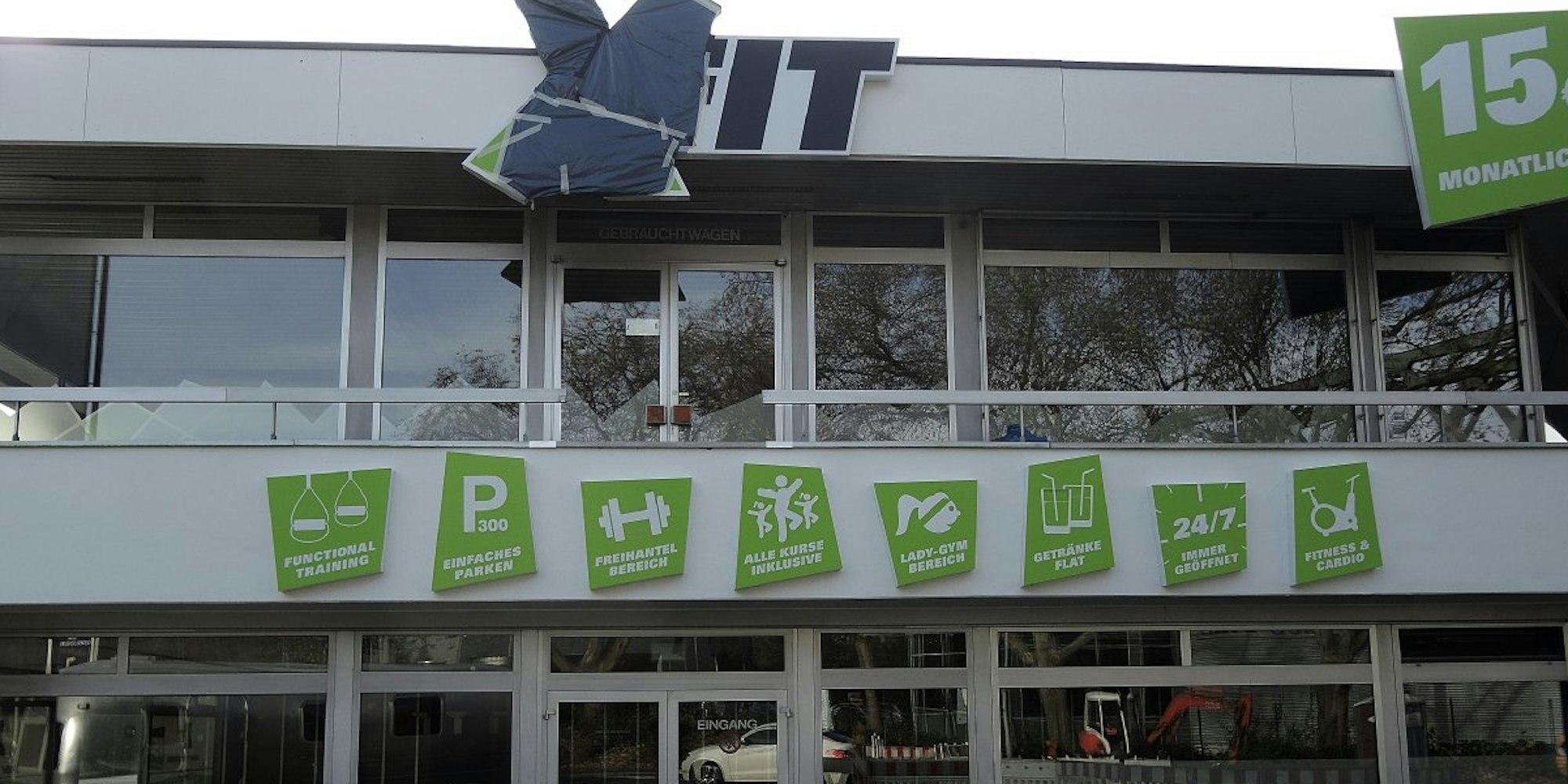 Fitness-ZoffMuckibude „xtrafit“ musste Logo überkleben