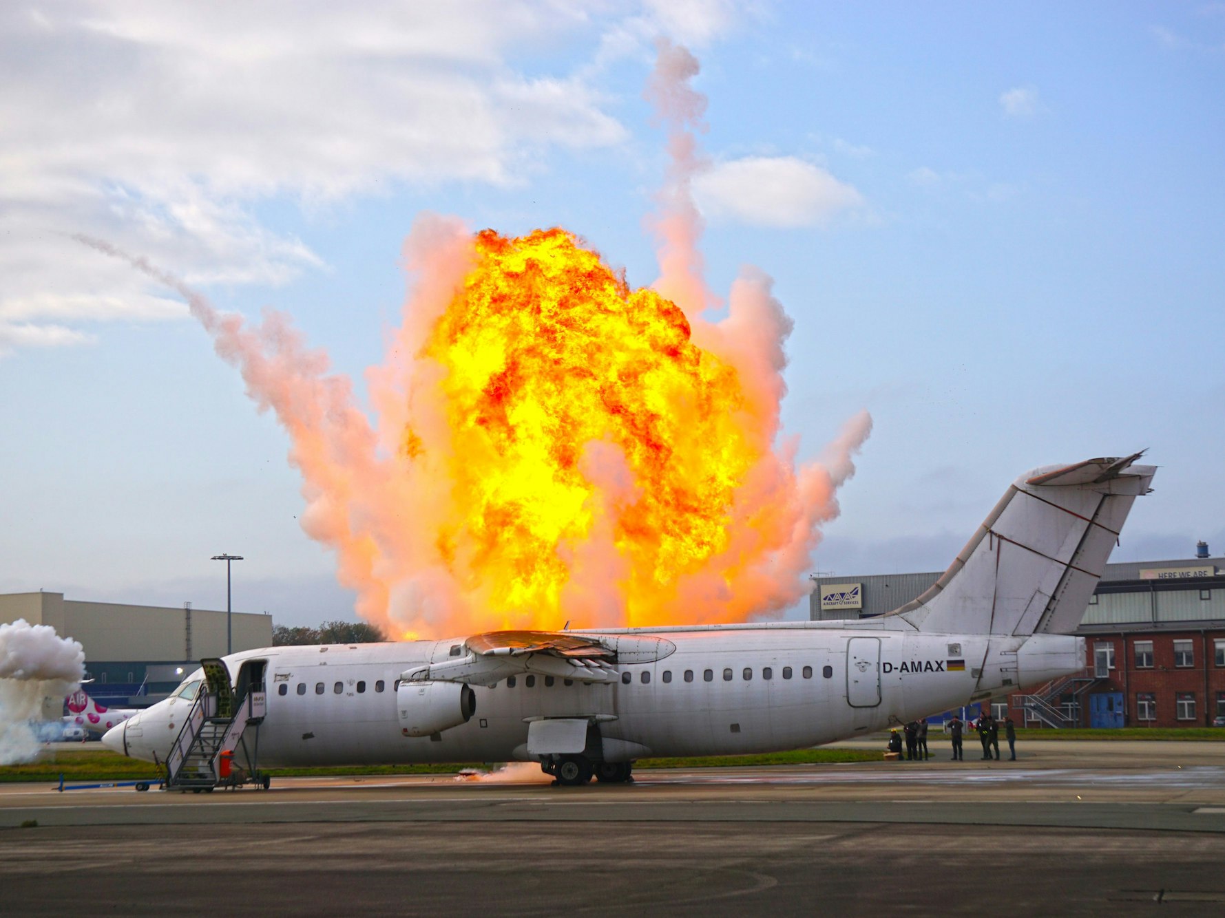 Bei der großangelegten ICAO-Übung wurde ein Schock-Szenario simuliert: Ein Flugzeug erleidet beim Landeanflug durch Vogelschlag einen Triebwerksschaden. Nach der Notlandung kommt es zu einem Brand und einer Explosion. Die Crew leitet die Evakuierung ein.