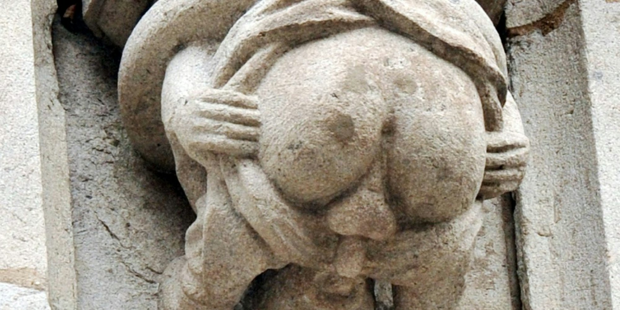 Breite sagt es geradeheraus und ohne rot zu werden: „Der bläst sich selbst einen.“ Im Fachjargon heißt das „Auto-Fellatio“. Und wo findet man den in Stein gemeißelten Porno? Es ist die Konsole, auf der die Ratsturmfigur des Kölner Ezbischofs Konrad von Hochstaden (1205 – 1261) steht. Die Konsole zeigt einen Mann, der seinen Hintern blank zieht und sich dabei auf sehr akrobatische Art selbst befriedigt.