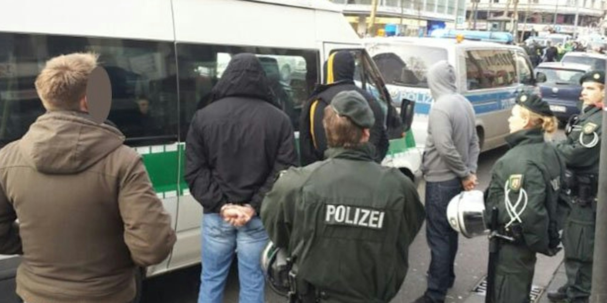 18. Januar 2014 am Rudolfplatz: Drei Männer werden nach den blutigen Krawallen mit Handschellen abgeführt.