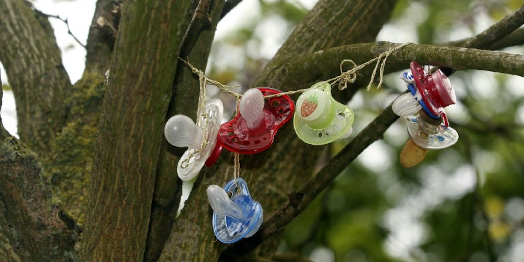 Kinder können Schnuller an Bäumen aufhängen, um sich leichter davon zu lösen.