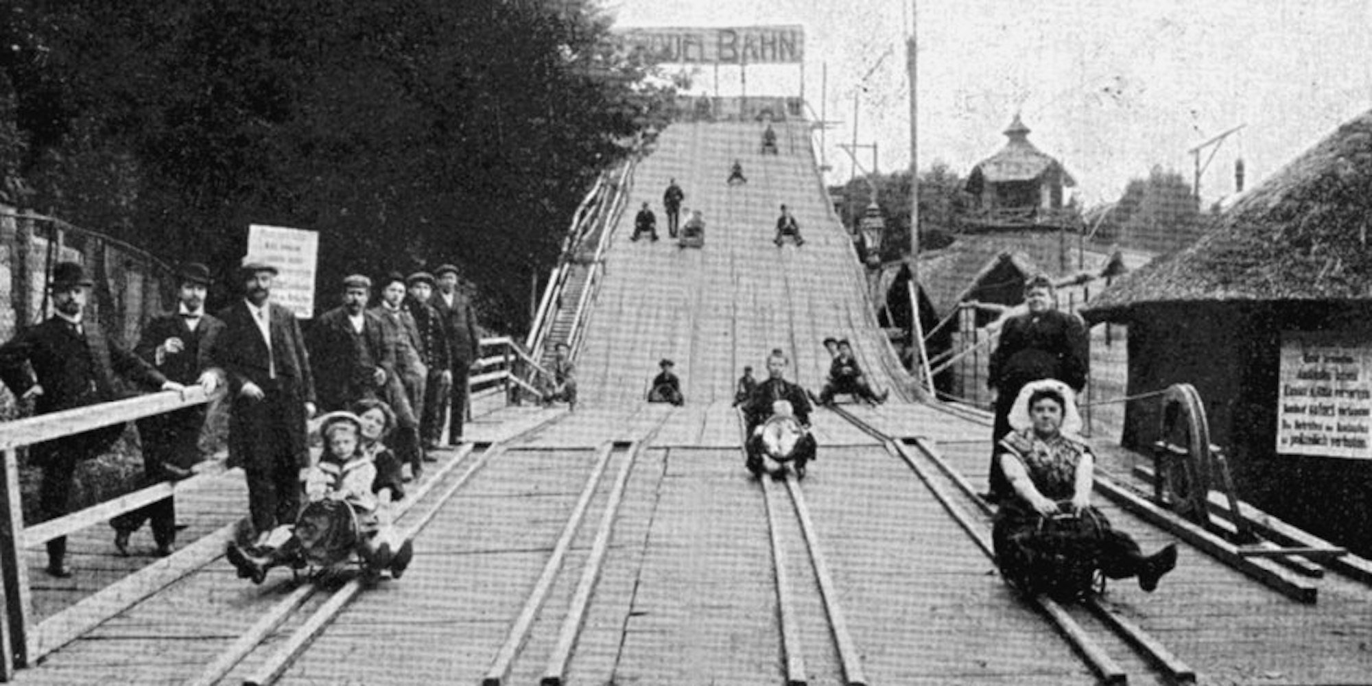 1909 öffnete der „Amerikanische Vergnügungspark“, der später „Luna-Park“ genannt wurde, seine Pforten. Eine Art festinstallierte Kirmes mit riesiger Holz-Achterbahn, einer Sommerrodelbahn oder einer Wasserrutschbahn, bei der Boote in einen künstlichen See stürzten und die Mitfahrer klatschnass wurden. Ebenfalls sehr beliebt: das Lach-Haus, das mit Verzerr-Spiegeln bestückt war.