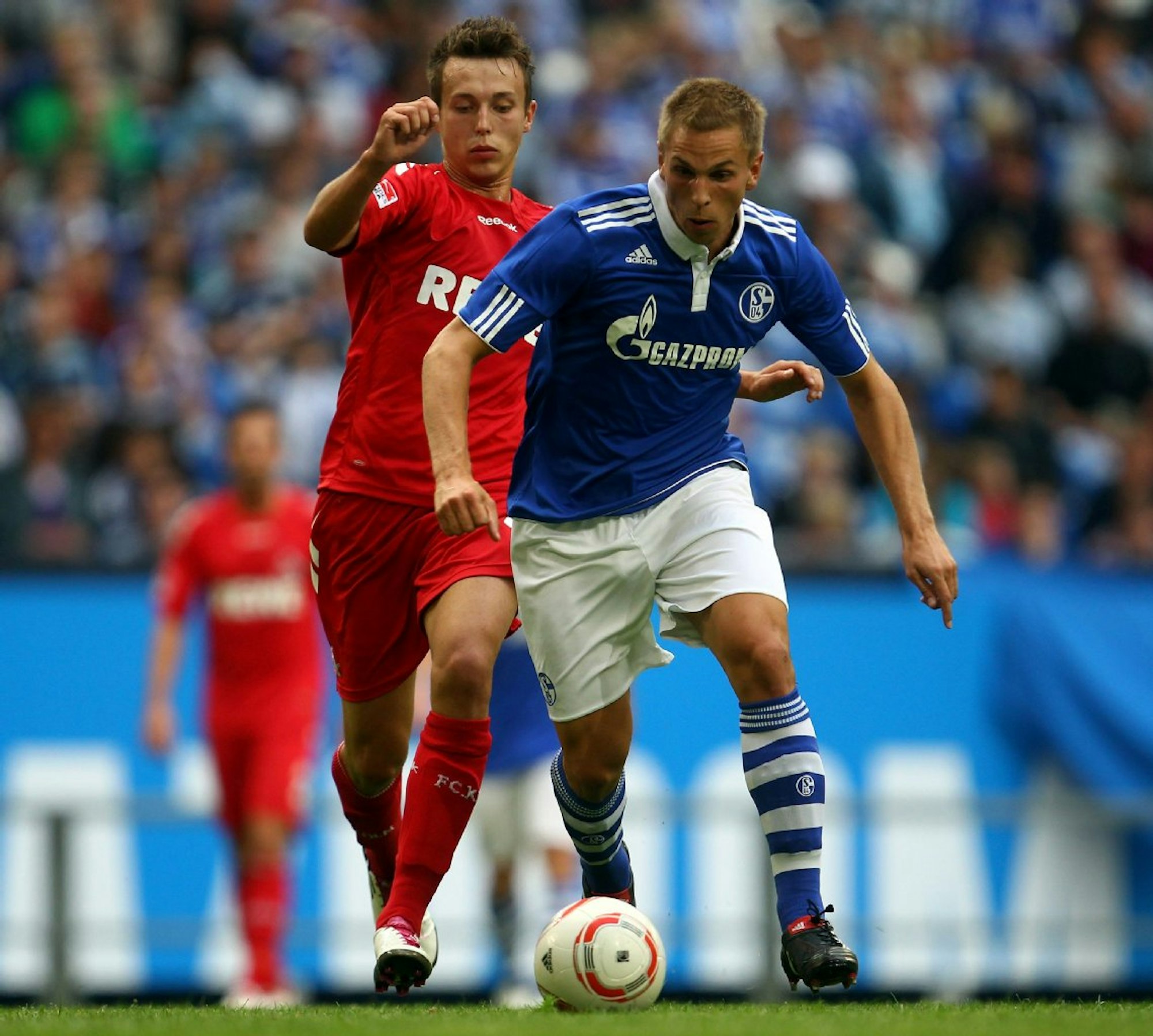 Marco Quotschalla (r.) im Schalke-Trikot im Test gegen Köln und Adam Matuschyk im Jahr 2010.