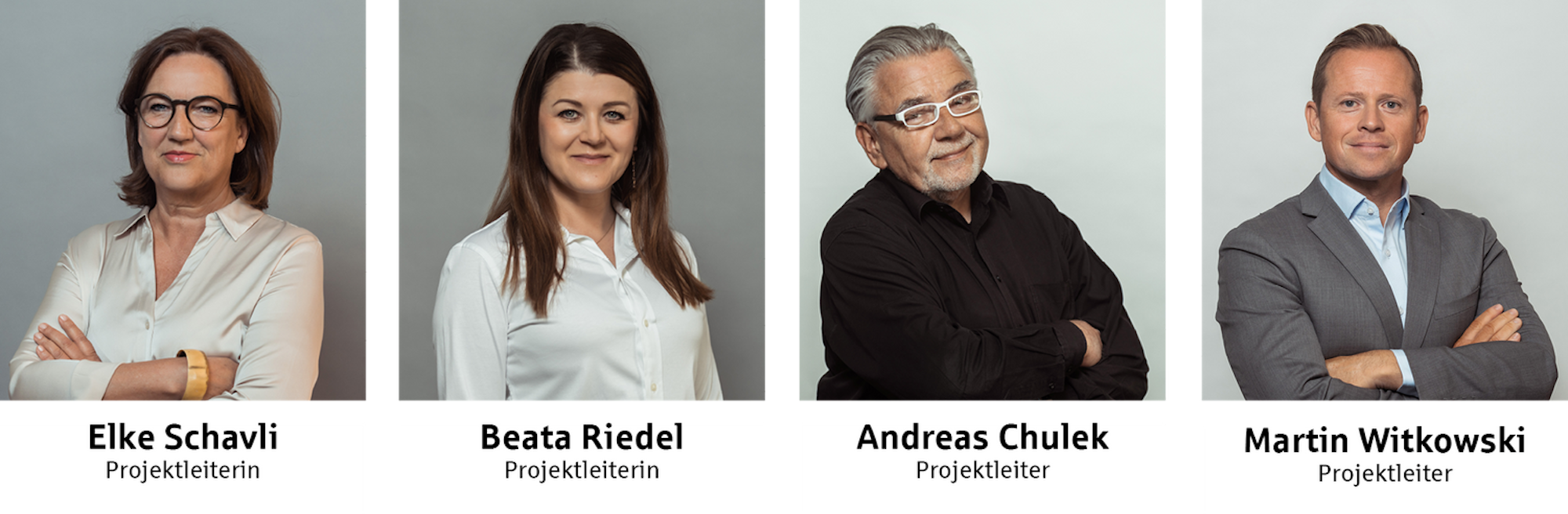 Projektleiterin Elke Schavli, Projektleiterin Beata Riedel, Projektleiter Andreas Chulek, Projektleiter Martin Witkowski von S Immobilienpartner