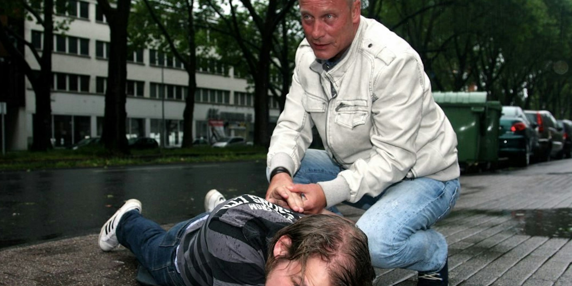 Direkt stürmte Trovato vom laufenden Dreh Richtung Unfallort. „Ich wollte nur helfen. Dachte, da wäre jemand schwer verletzt, eingeklemmt oder so.“ Dann sah er einen Mann davonrennen, ein Polizist verfolgte ihn. „Zuerst versuchte ein Jogger, den Flüchtenden aufzuhalten – vergebens. Da schnitt ich ihm den Weg ab.“