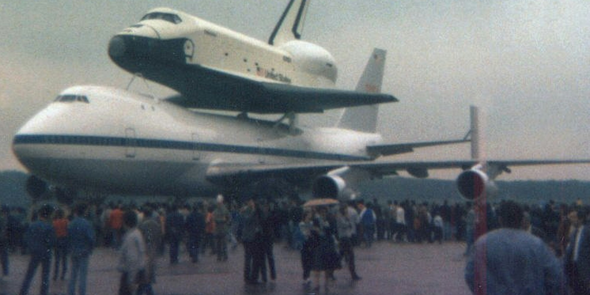 Gelandet und gleich bestaunt: Die Raumfähre „Enterprise“, huckepack auf einer Boeing 747.