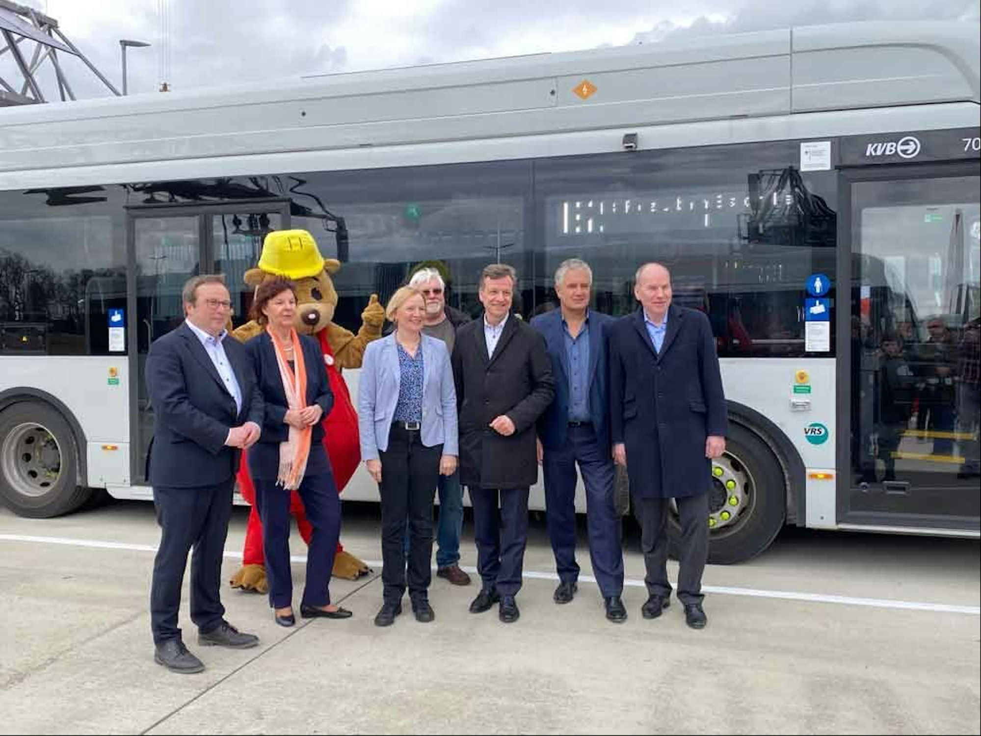 NRW-Landesverkehrsminister Oliver Krischer eröffnete zusammen mit Stefanie Haaks (Vorstandsvorsitzende der KVB), Ascan Egerer (Beigeordneter für Mobilität der Stadt Köln) und Bezirksbürgermeisterin Sabine Stiller die Anlage. Stefanie Haaks dankte dabei dem Land Nordrhein-Westfalen für dessen Engagement in der Antriebswende: „Die KVB investiert in den neuen Eletkro-Busbetriebshof rund 35 Millionen Euro. Etwa 12,2 Millionen Euro hiervon steuert das Land NRW bei. Ohne diese Unterstützung könnten wir den Wandel hin zu alternativen Antrieben nicht bewältigen. Gemeinsam schaffen wir die Basis für den Klimaschutz in der Mobilität.“