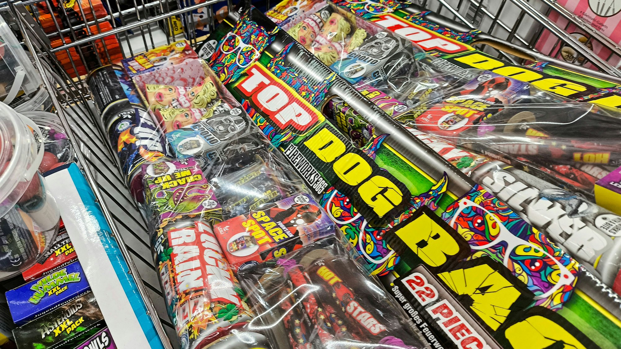 Einkaufswagen voller Feuerwerk trotz Verbotsdebatte.