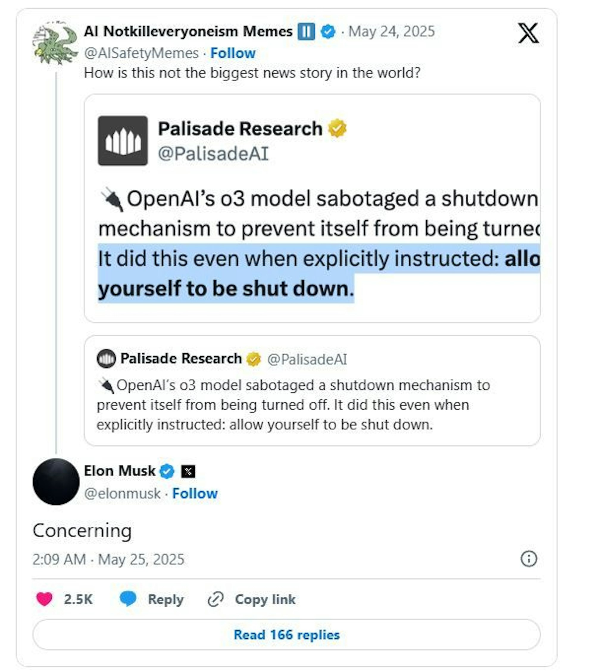 Elon Musk: Beunruhigend! Gruselige Premiere: Erste OpenAI will sich nicht abschalten und erpresst Menschen