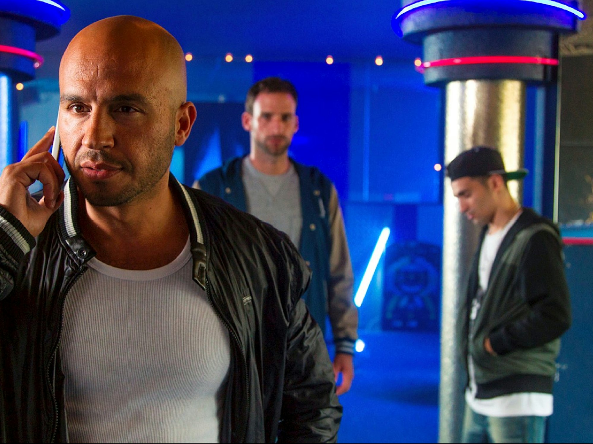 Eine Gewalt-Szene von vielen: Gangster-Boss Hassan Nidal (Dar Salim) bedroht Carmen Althaus (Christine Heim).