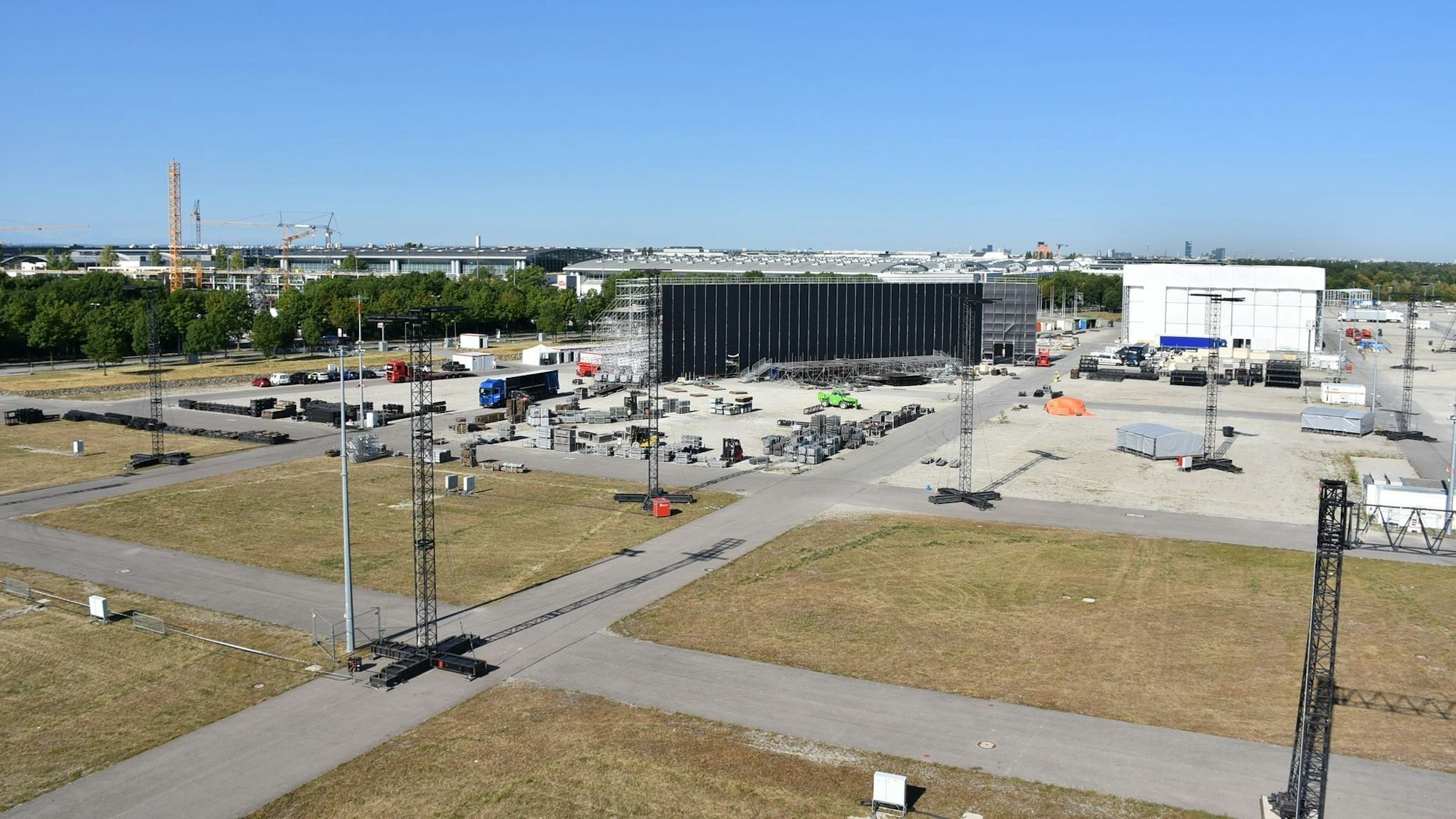Noch laufen die Aufbauarbeiten: Es gibt für die Konzerte in München eine extra errichtete Sitzplatz-Tribüne.