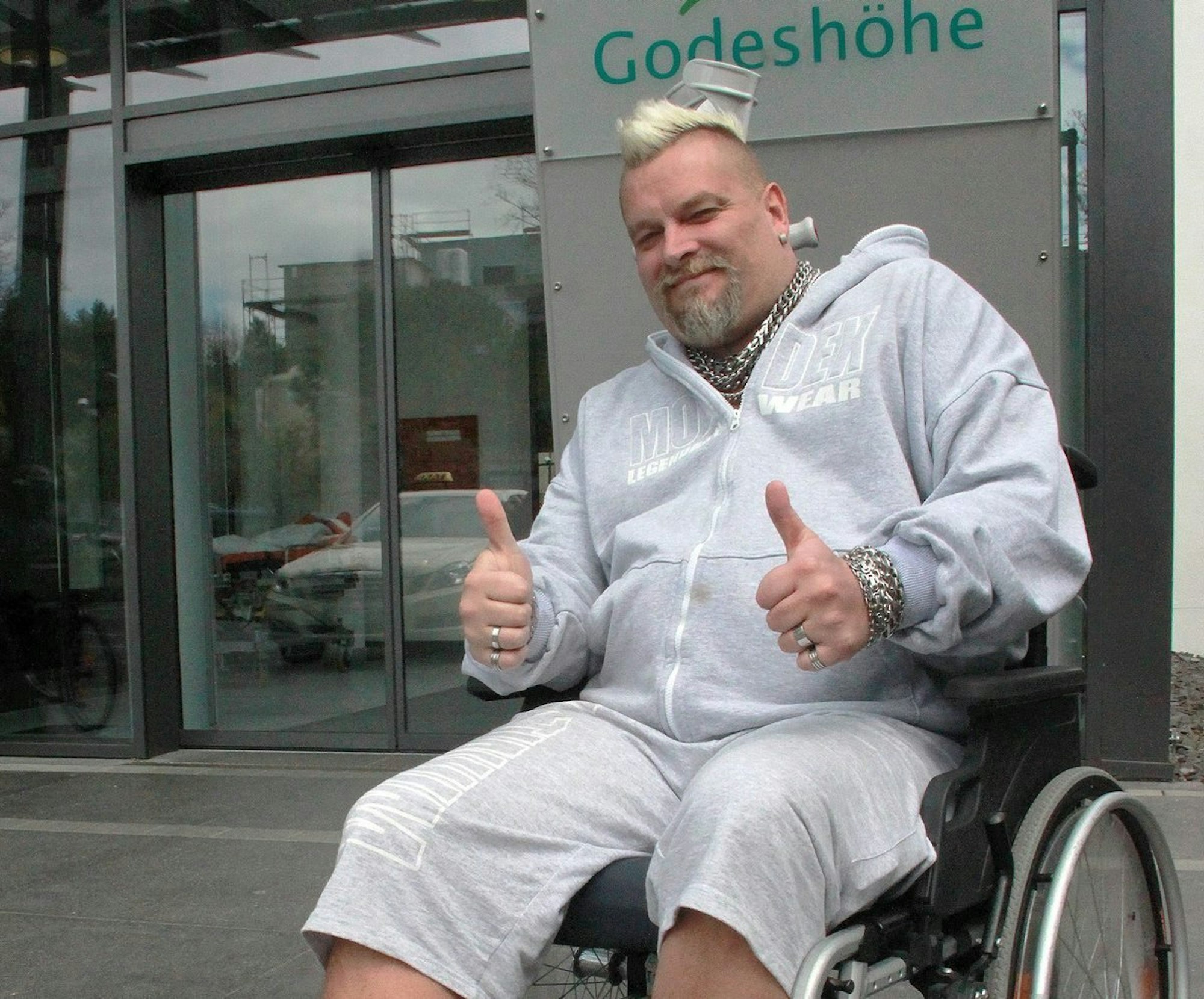 Im Rollstuhl: Seine Reha verbrachte Esser in einer Klinik in Bad Godesberg.