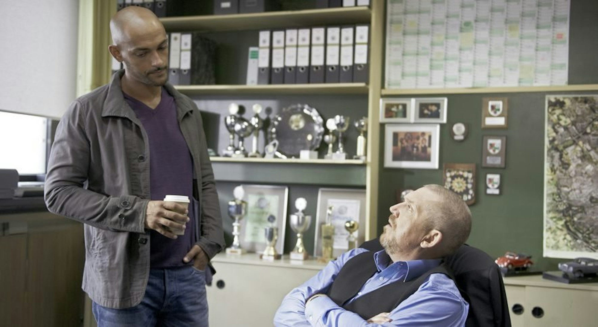 Patrick Abozen als „Tobias Reisser“ mit Dietmar Bär im „Tatort: Dicker als Wasser“.