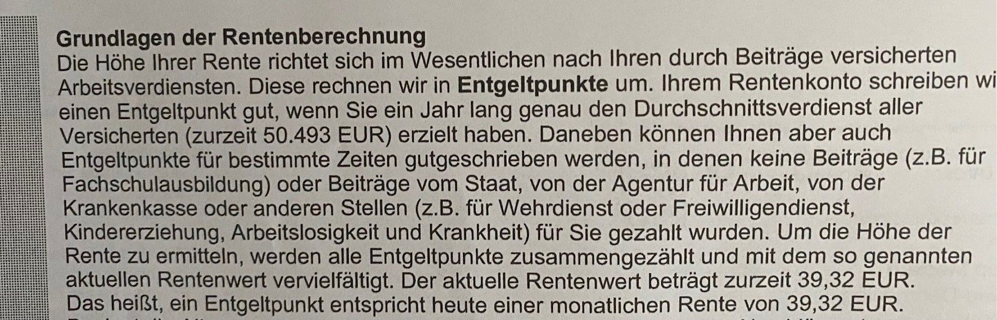 Habt ihr schon Post von der Rente erhalten? Wer die diesjährige Renteninformation aufmerksam liest, erfährt dort eine erstaunliche Zahl. Denn das Jahresgehalt, nach dem sich die Abgaben zum Erhalt der wertvollen Rentenpunkte richten, liegt jetzt schon bei satten 5.0493 Euro.