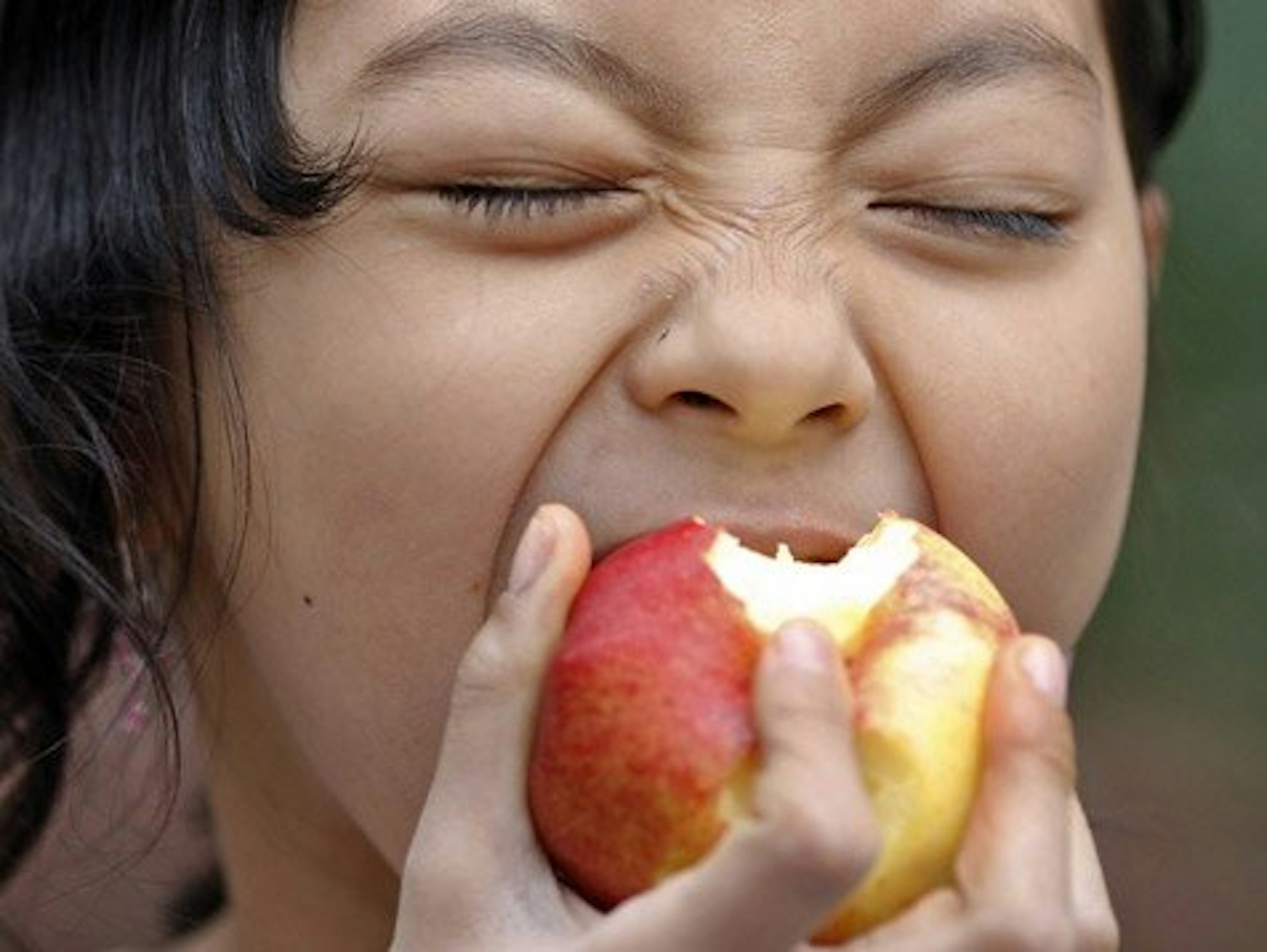 Der Nachbar darf nicht einfach Obst vom fremden Grundstück aufsammeln.