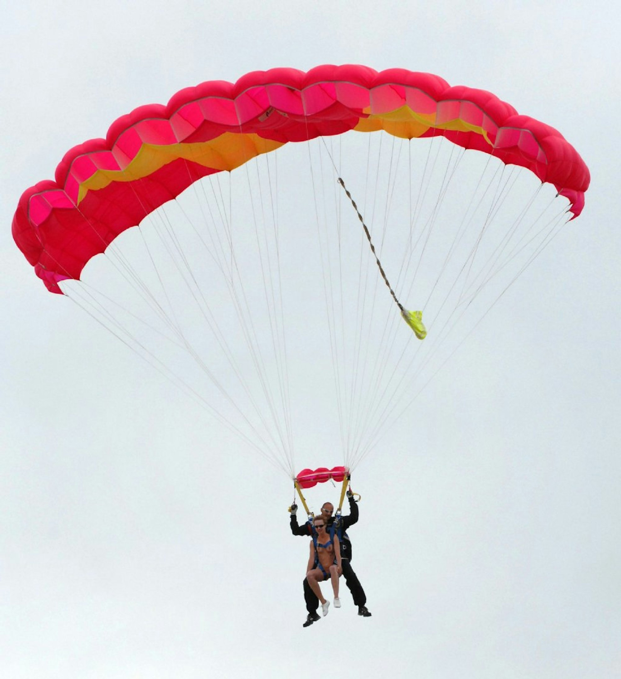 Echte Freiheit: Ohne Kleider können Wagemutige auf Usedom einen Fallschirmsprung wagen. Nur der Fluglehrer ist angezogen.