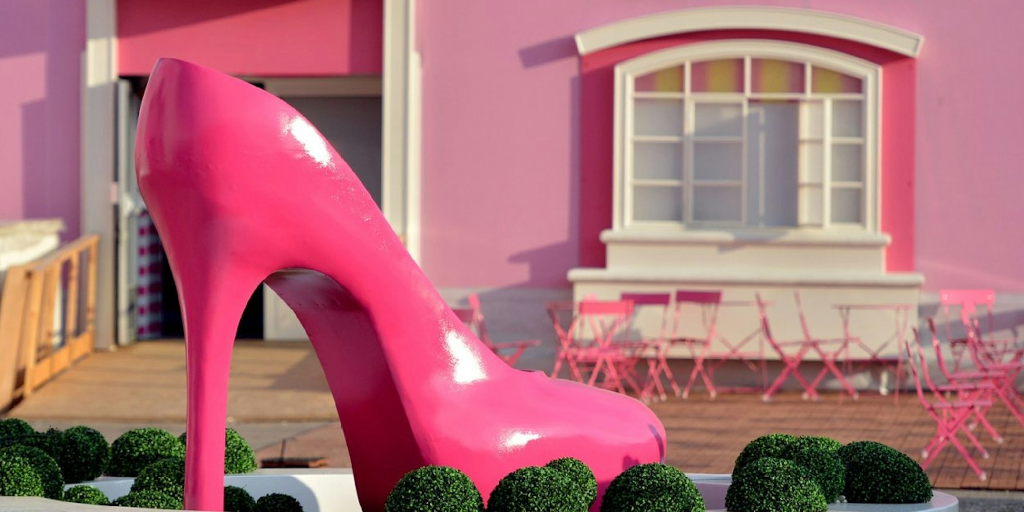 Ein Ortstermin vor Fertigstellung der „Erlebnisausstellung“ gab erste Einblicke: Vom Springbrunnen in Form eines riesigen rosa Stöckelabsatz, der in der Lobby prangen soll, ist zwar noch nichts zu sehen. Dafür stehen schon Teile der Einrichtung, ganz „Malibu-Style“ in Rosa, Weiß und Gold. „Willkommen in der sonnigen Barbie-Welt“, grüßt eine Agenturmitarbeiterin in die Runde. Von Sonne oder Tageslicht jedoch keine Spur, die Fenster sind nur aufgemalt. Dafür ragt ein lächelnder Plastik-Pferdekopf ins Zimmer.