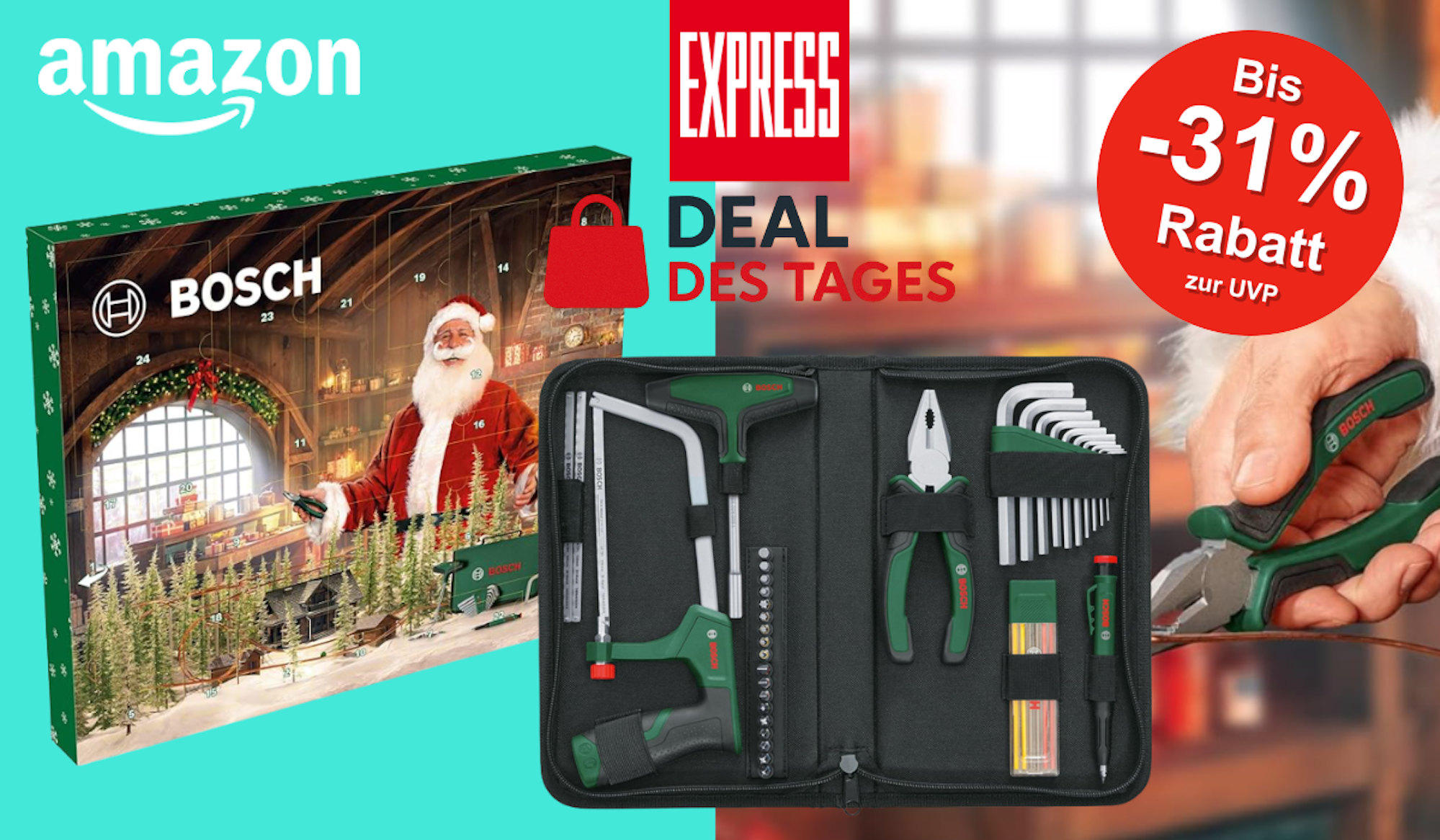 Gerade jetzt laufen Baumarkt-Produkte besonders gut, denn viele möchten ihr Zuhause winterfest machen oder schon an die ersten Weihnachtsgeschenke werkeln. Mit den EXPRESS Deals des Tages sicherst du dir den beliebten BOSCH Adventskalender 2025 satte 31% günstiger. So kannst du dich selbst beschenken oder einem lieben Menschen eine große Freude machen – und das zum absoluten Top-Preis.