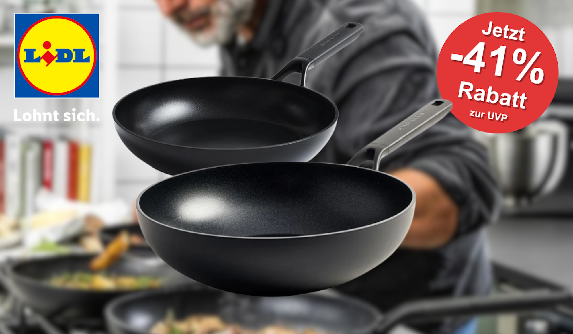 Ab heute im Lidl Onlineshop verfügbar – und das zu unschlagbaren Preisen: KitchenAid Bratpfannen und eine Wokpfanne gibt es ab 24,99 Euro, mit Rabatten von bis zu 41 Prozent. Wer schon länger mit dem Gedanken gespielt hat, seine Küchenausstattung aufzuwerten, sollte jetzt schnell zugreifen.