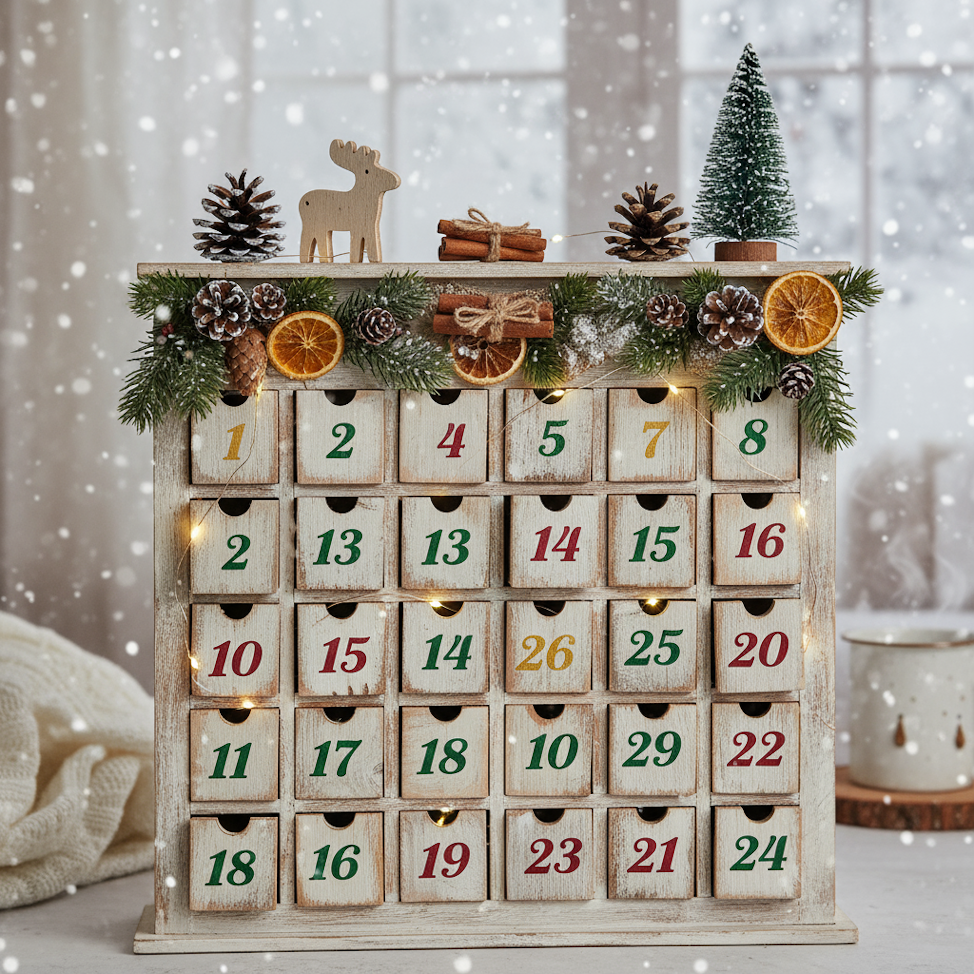 Individuelle Adventskalender aus Holz sind ein echter Hingucker. Mit einer BOSCH Mini-Bohrmaschine und einem präzisen Multitool von Einhell kannst du kleine Fächer und Verzierungen ganz einfach selbst gestalten.