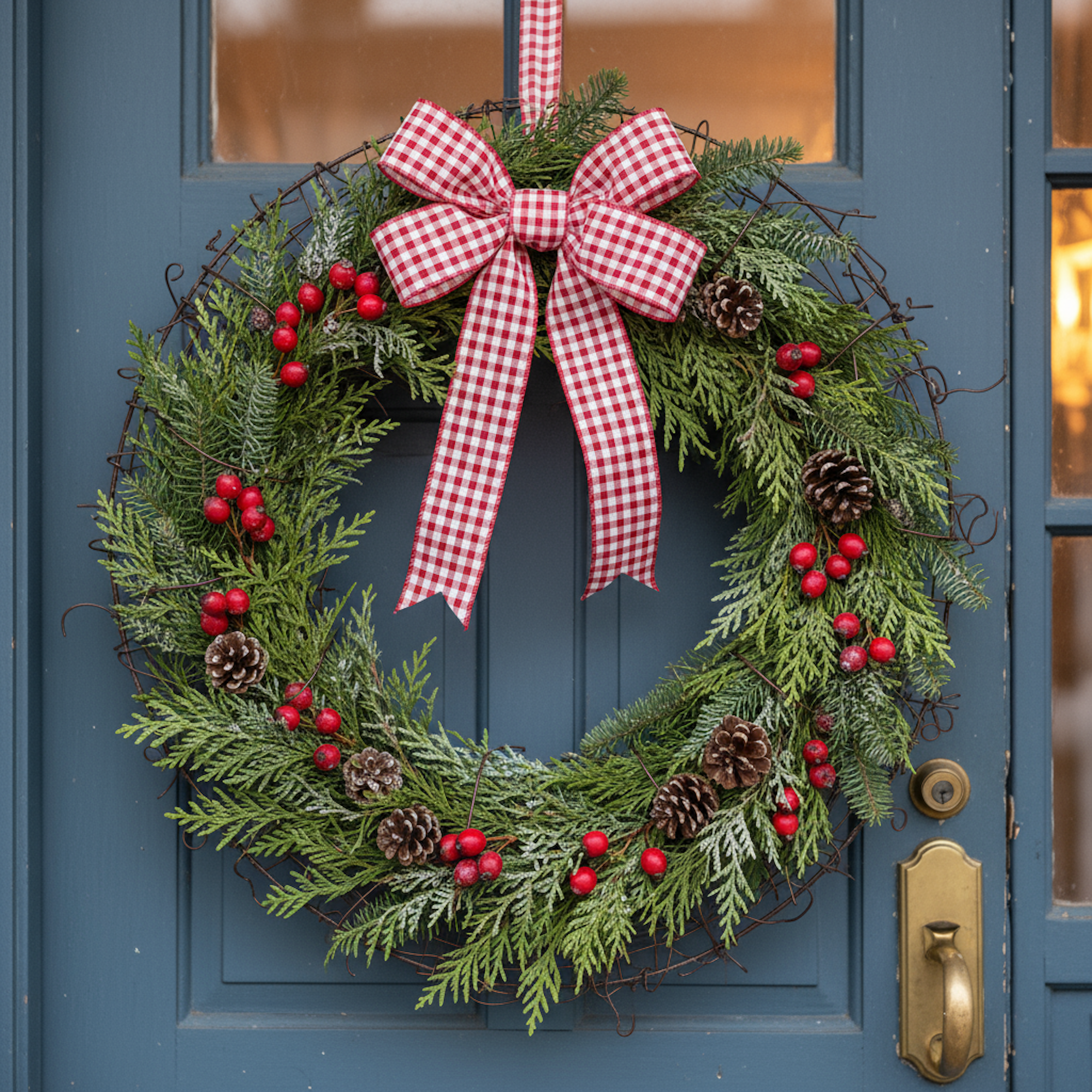 4. Winterliche Türkränze mit Draht und Tannenzweigen