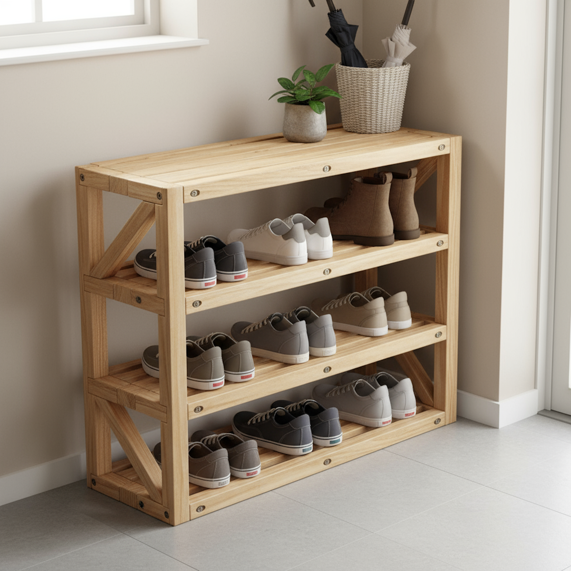 Für Ordnung und Struktur im Eingangsbereich ein Schuhregal selber bauen.
