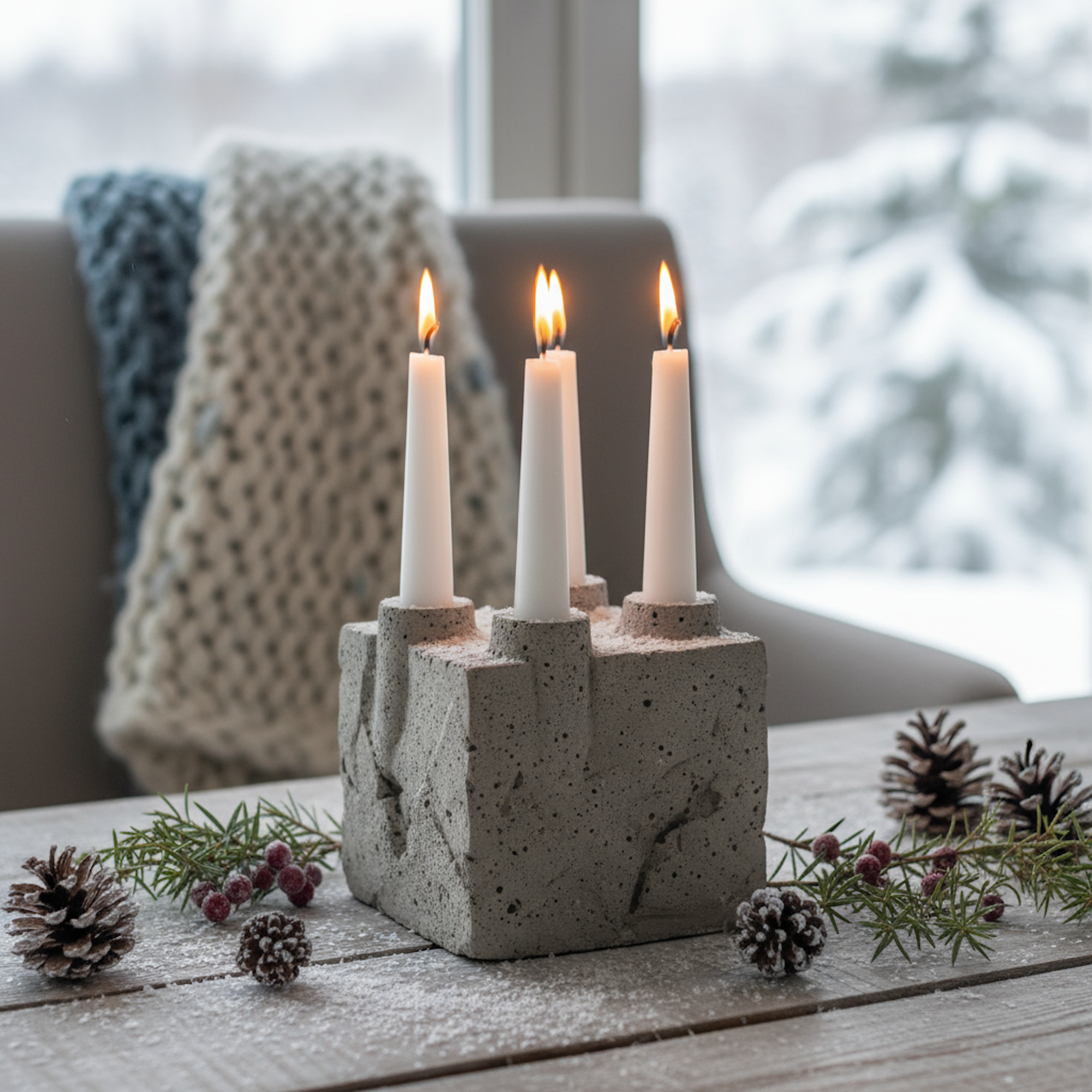 Ein Kerzenständer aus Beton - Lass deinen Tisch zum Hingucker werden dank deiner DIY Leistung.