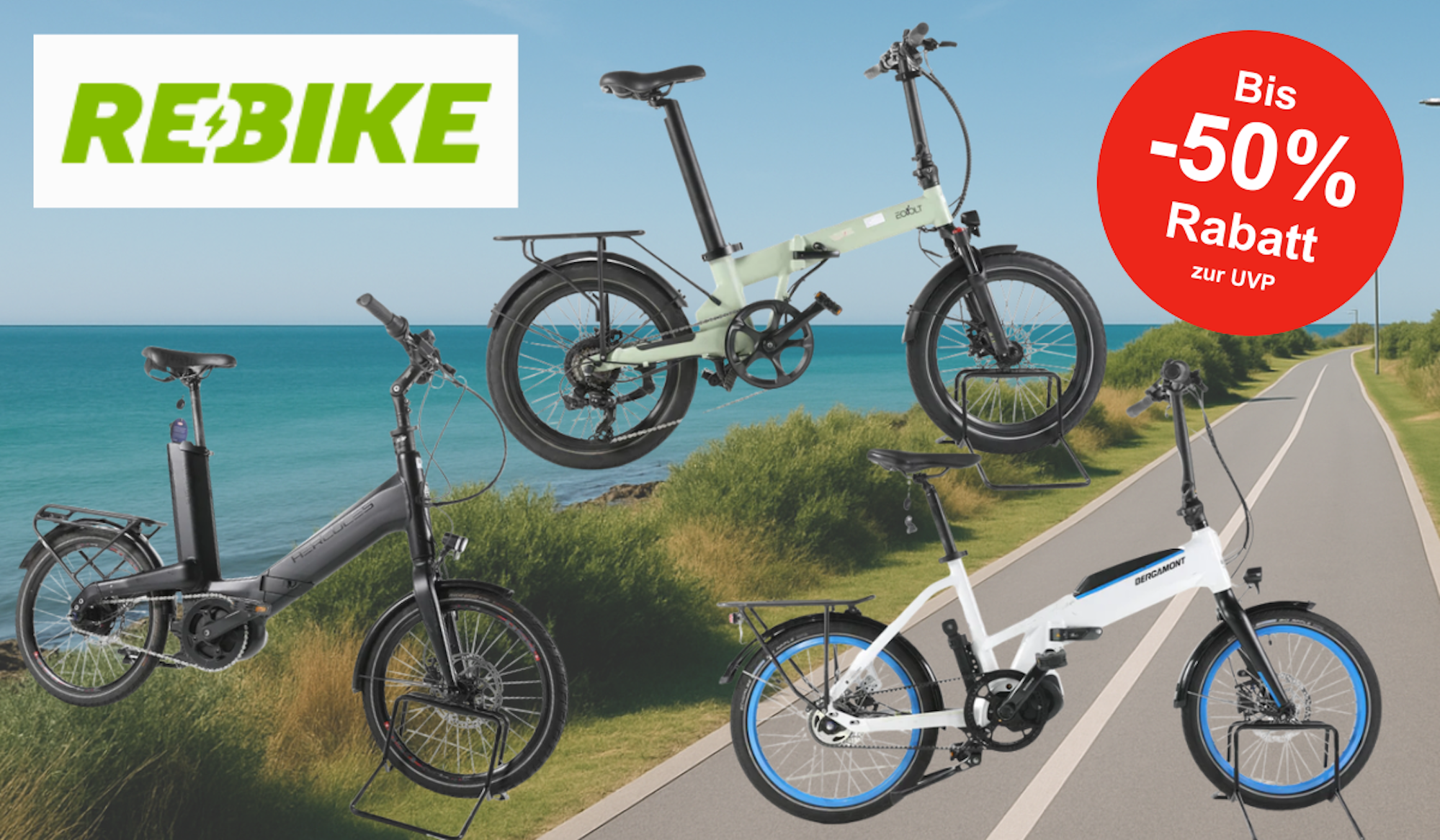 E-Falträder bei RebikeJetzt bis zu 50 % sparen – das praktischste Fahrrad für Stadt, Urlaub und Alltag