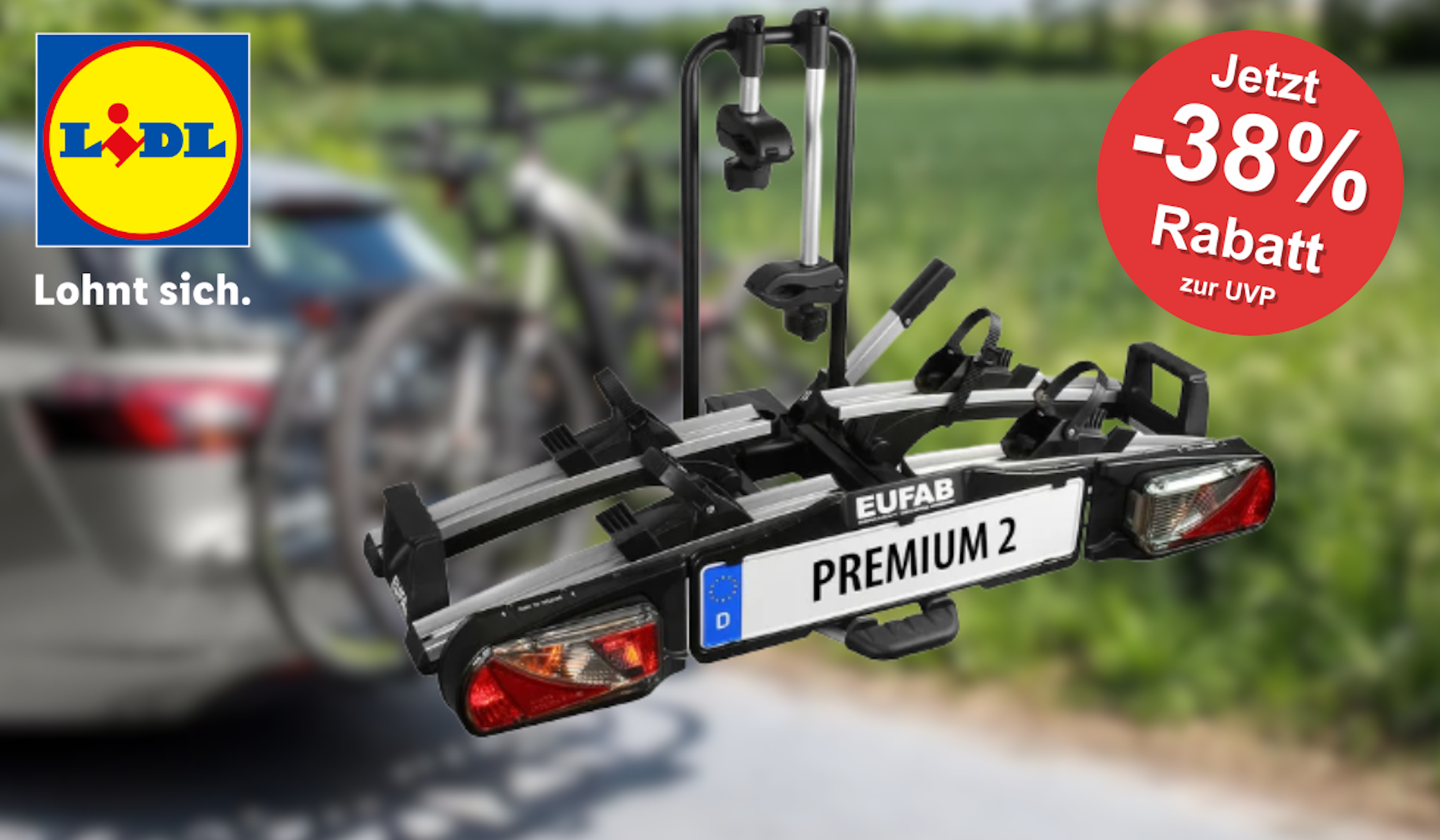 Der EUFAB Premium II ist aktuell im Lidl Onlineshop zum Bestpreis erhältlich – wer zwei Fahrräder sicher und komfortabel transportieren möchte, schnappt sich den beliebten Anhängerkupplungs-Träger jetzt mit bis zu 38 Prozent Rabatt