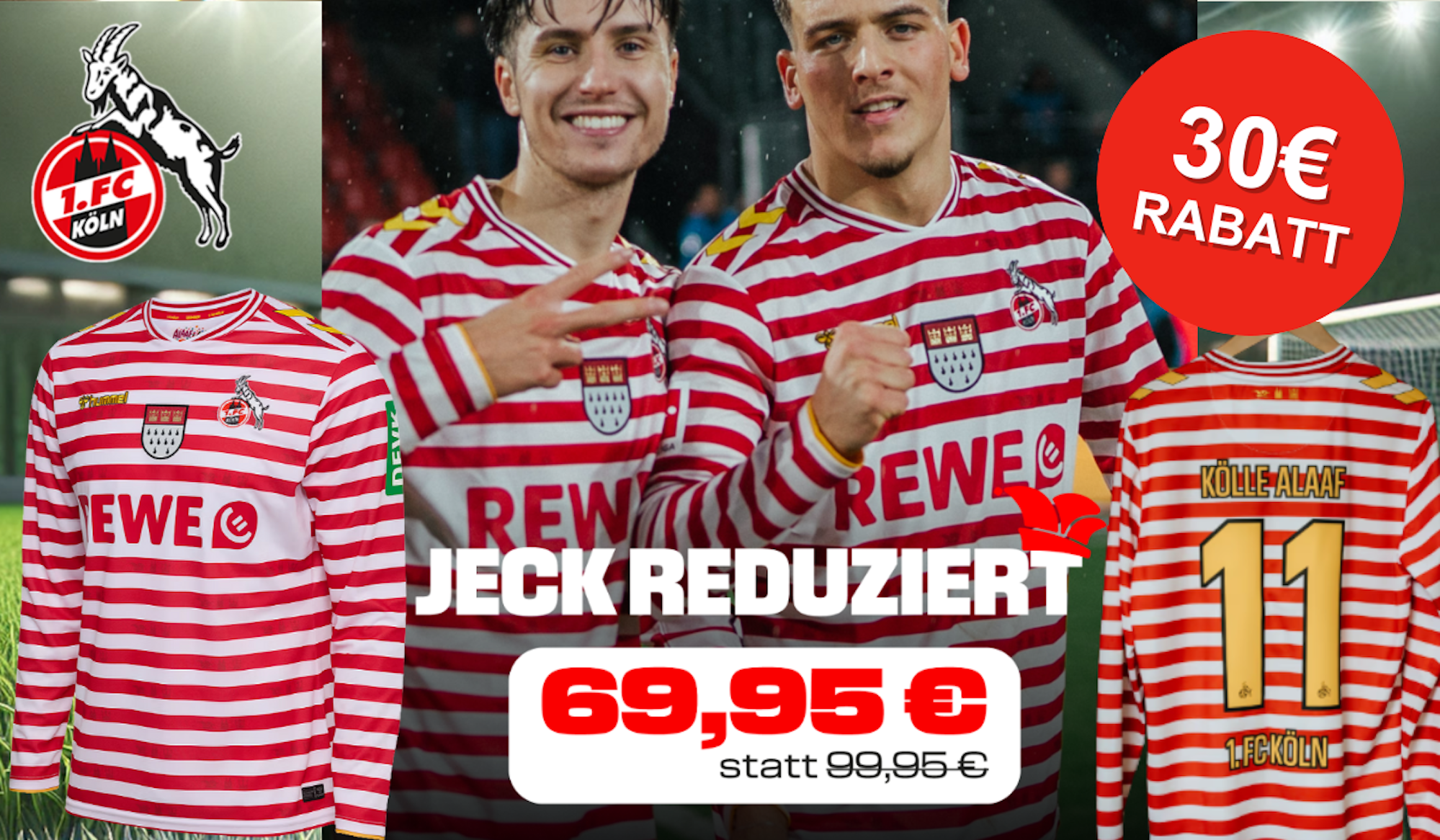 Jeck reduziert30€ weniger für das Fastelovendtrikot vom 1. FC KÖLN - NUR SOLANGE DER VORRAT REICHT