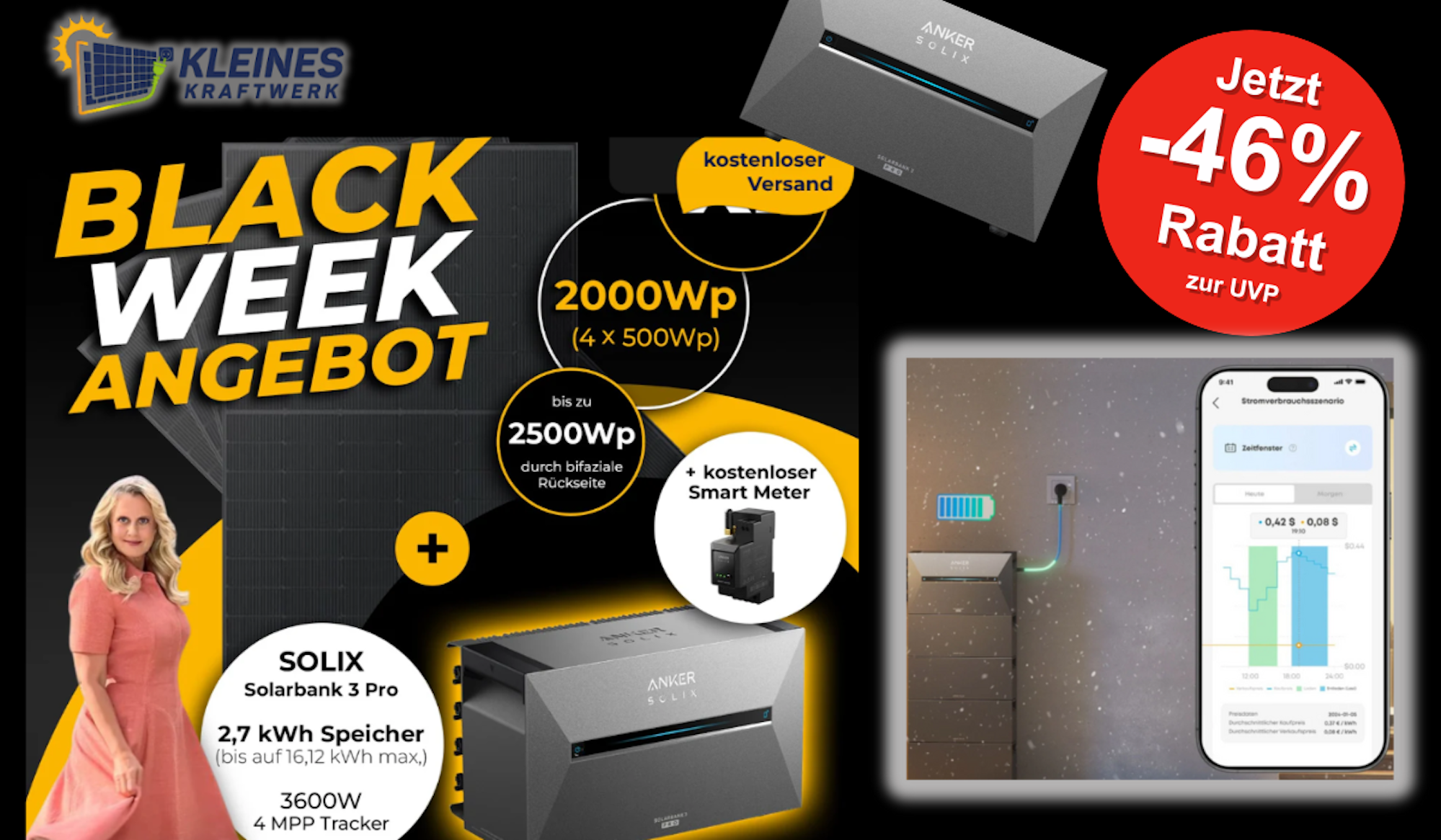 Sichere dir jetzt das Black Week Angebot und profitiere von kostenlosem Versand, 10 Jahren Garantie und einer Investition, die sich in spätestens fünf Jahren amortisiert. Mehr Infos und das Angebot findest du direkt auf der Angebotsseite von Kleines Kraftwerk.