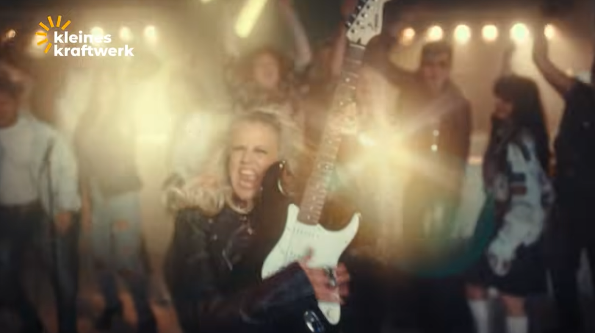 Barbara Schöneberger , das neue Markengesicht von Kleines Kraftwerk, schwingt im neuen Werbevideo die E-Gitarre.