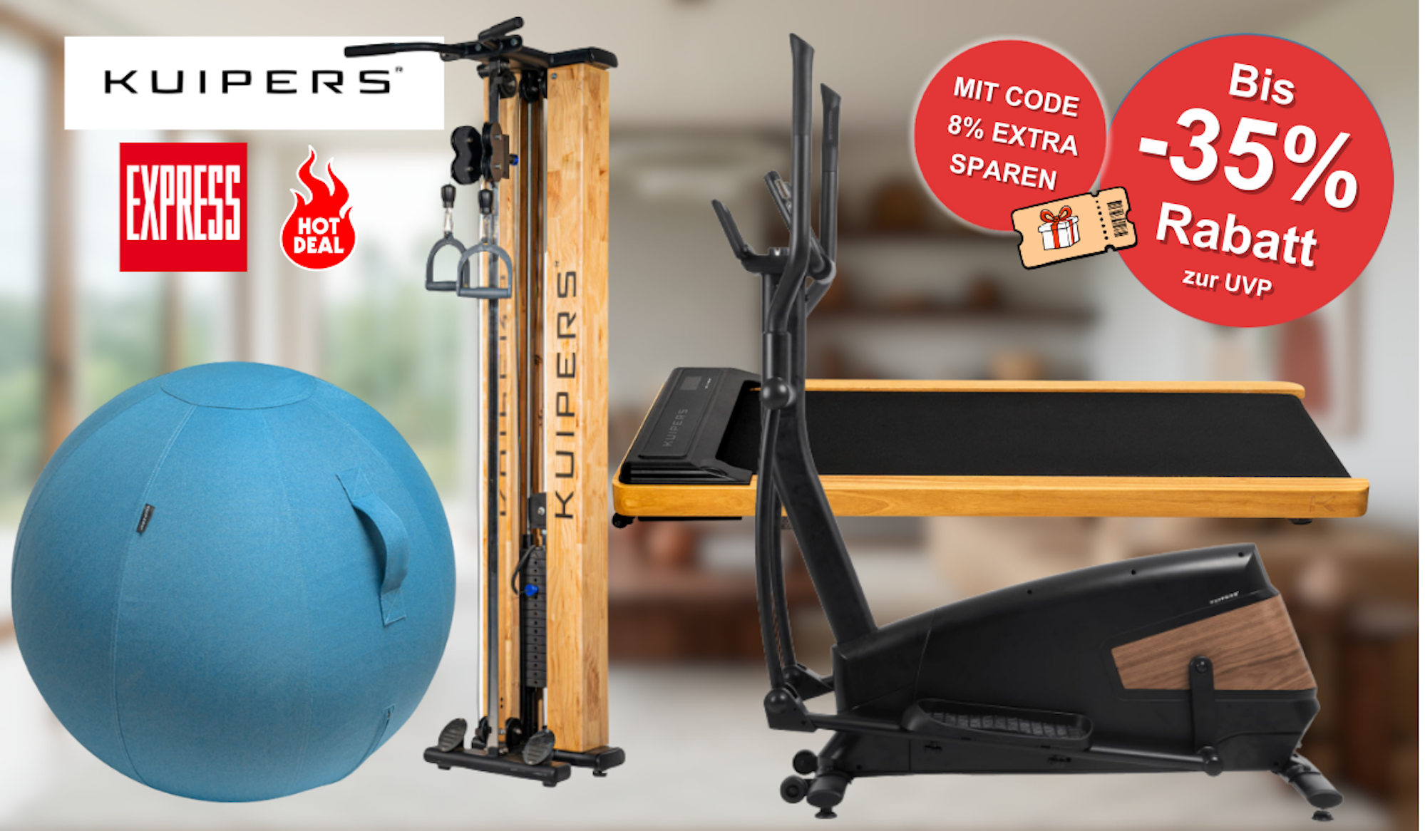 Exklusiver EXPRESS Kuipers Fitness CodeBis zu 35% auf Home Office Laufbänder, Indoor Bikes, Seilzugtürme, Gymnastikbälle u.v.m.
