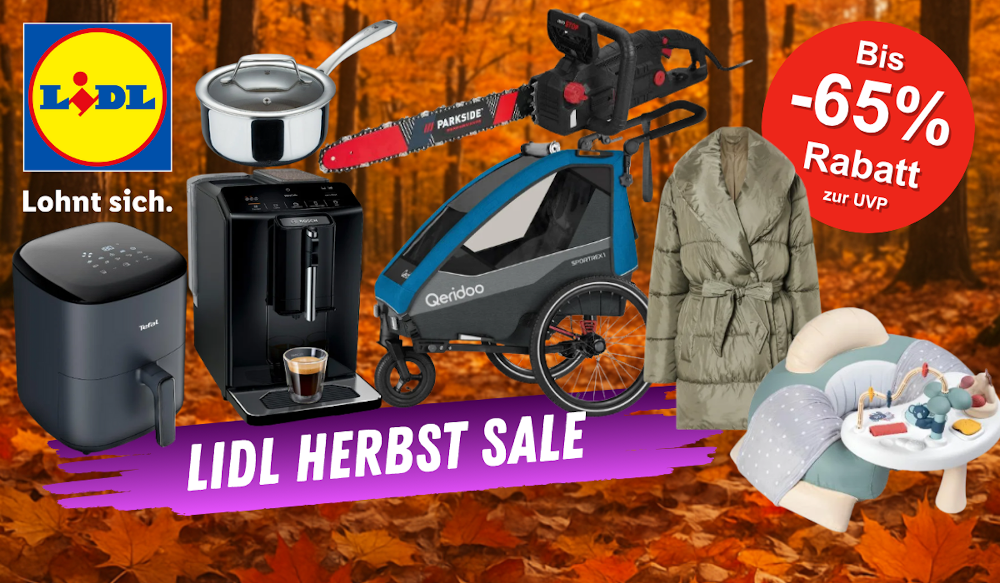 Der Herbst ist da – und mit ihm eine einmalige Gelegenheit, richtig zu sparen. Bei Lidl.de läuft jetzt der große Mega Herbst Sale, bei dem du dir bis zu 65% Rabatt auf Top-Marken wie Tefal, Krups, Playtive, Parkside, Lupilu und viele mehr sichern kannst.