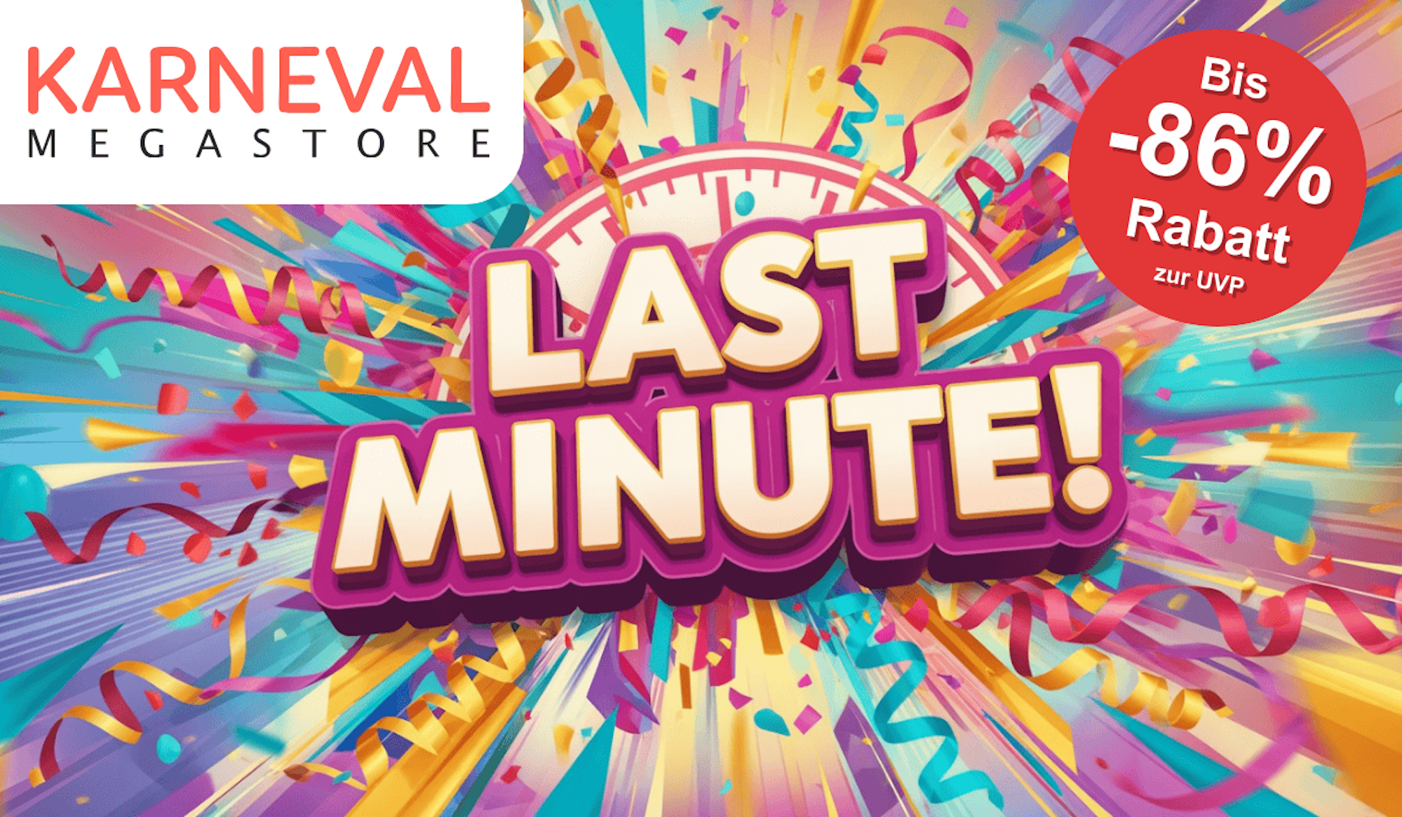 Die Zeit drängt und du brauchst noch ein passendes Karnevalskostüm? Kein Problem! Im Karneval-Megastore findest du eine riesige Auswahl an Karnevals-, Faschingskostümen und Accessoires. Spare mit unserem exklusiven Rabattcode „KAREXPR26“ 20% auf den zweiten, günstigeren Artikel!