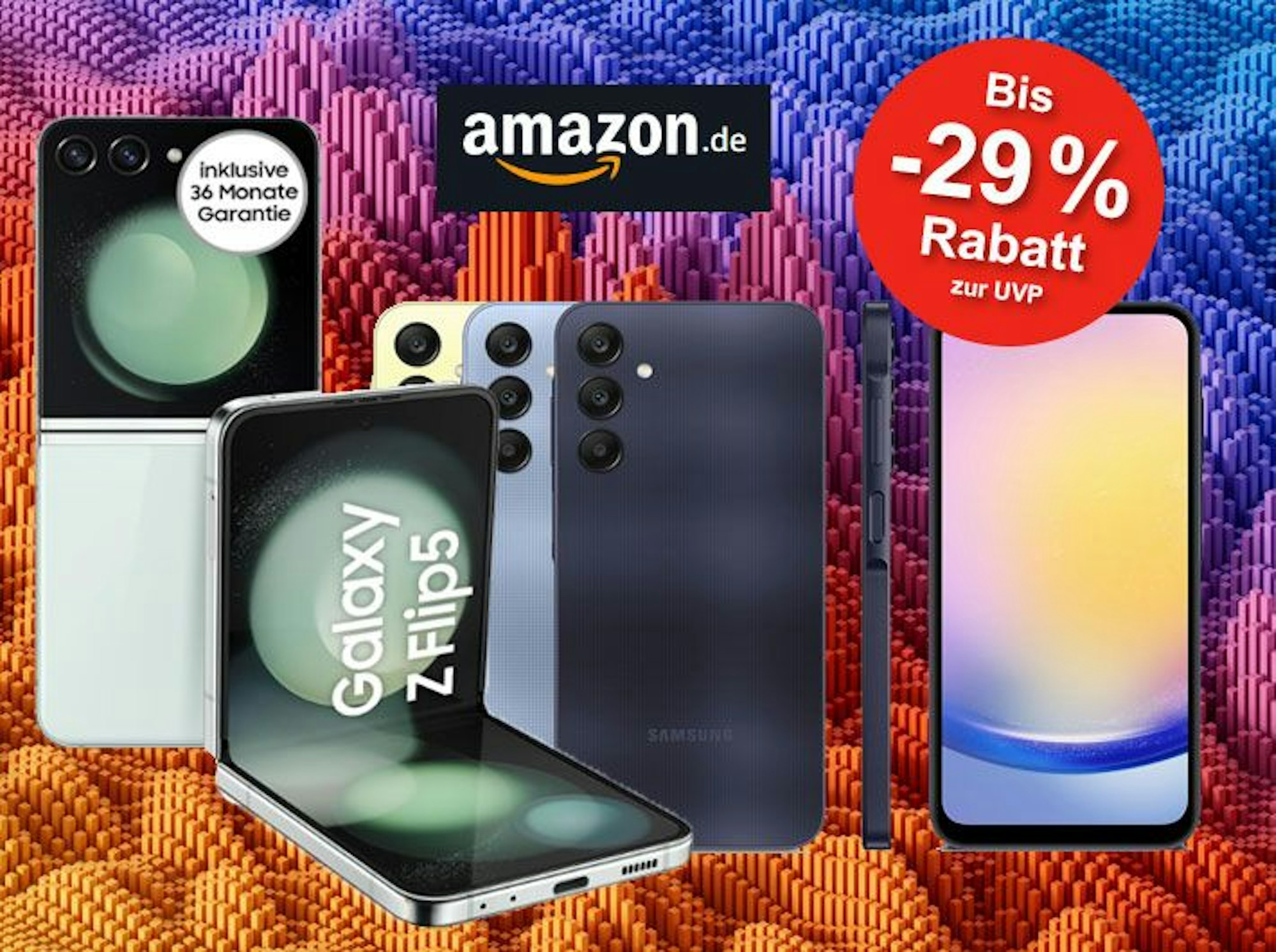 Aber das ist noch nicht alles. Auch diejenigen, die ein solides Smartphone mit exzellentem Preis-Leistungs-Verhältnis suchen, werden fündig: Das Samsung Galaxy A25 und A34 bieten beeindruckende Features zu einem Bruchteil des Preises. Diese Aktion ist deine Eintrittskarte in die Welt der nächsten Generation von Mobiltechnologie, ohne dass dein Geldbeutel darunter leidet.
