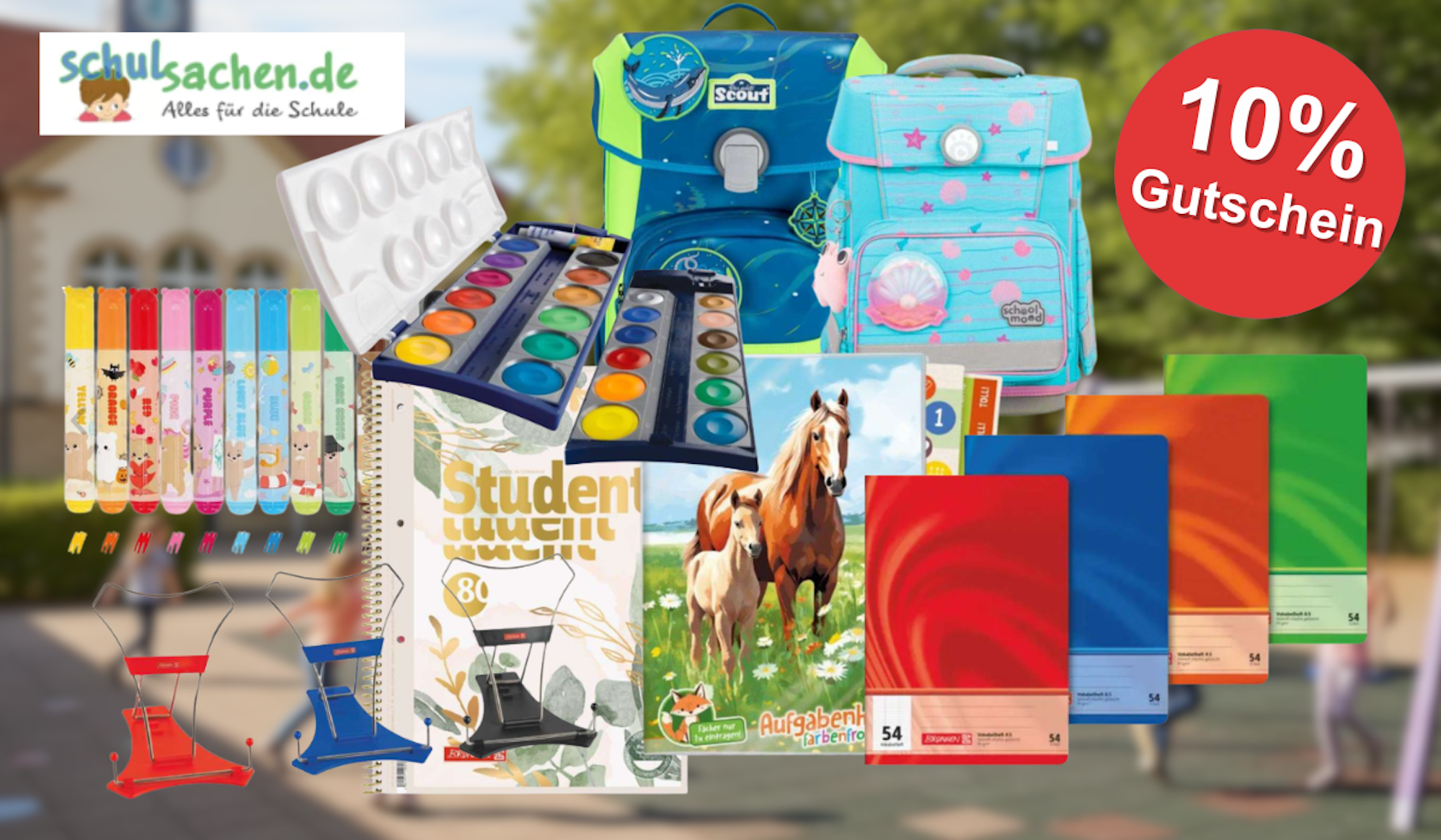 Spare mit dem 10% Gutscheincode nochmal mehr bei schulsachen.de