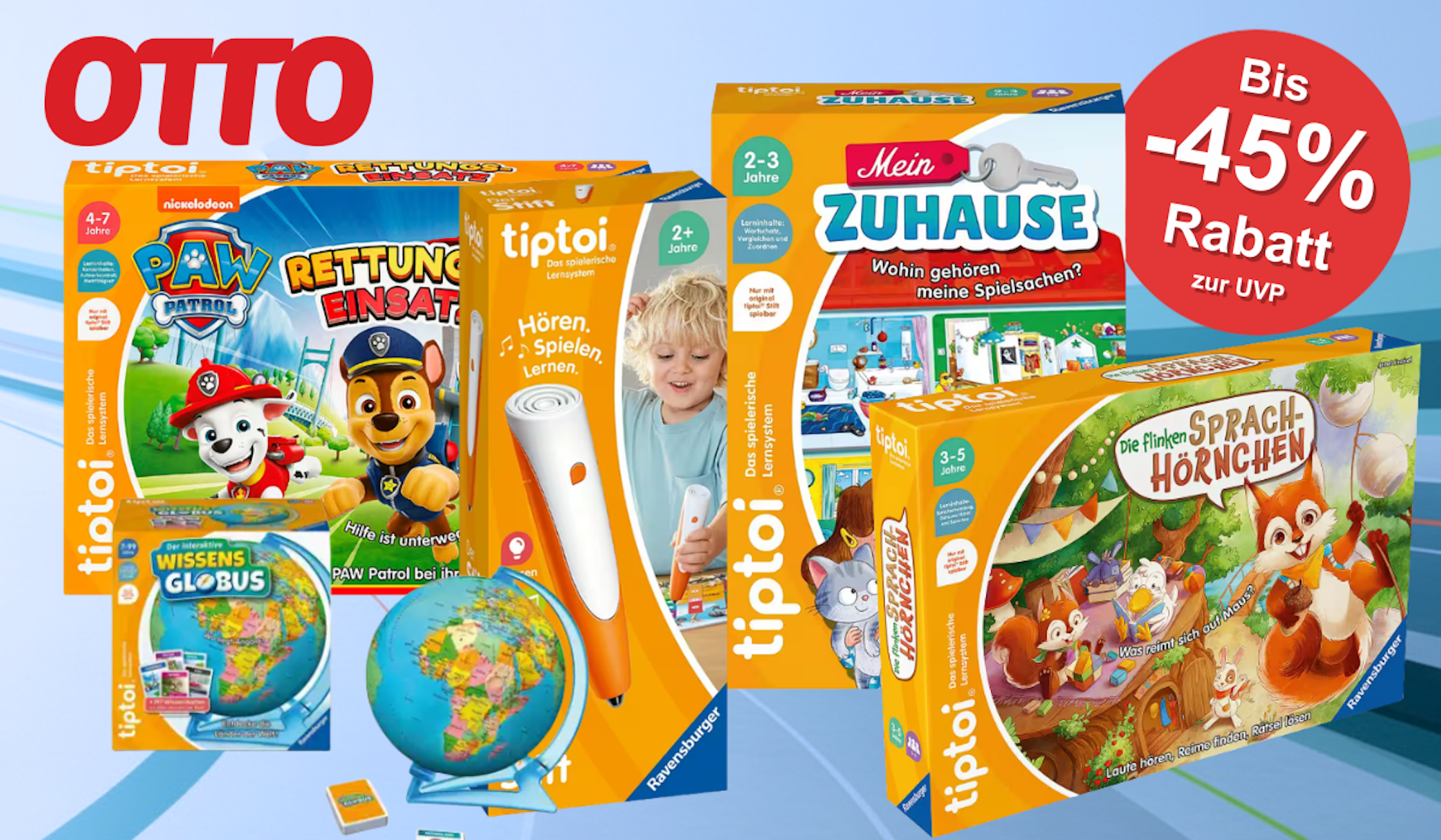 Wer auf der Suche nach hochwertigem Lernspielzeug für Kinder ist, wird gerade bei OTTO fündig: Im aktuellen Ravensburger tiptoi® Sale gibt es zahlreiche Produkte aus dem beliebten interaktiven Lernsystem mit satten Rabatten von bis zu 45 Prozent.