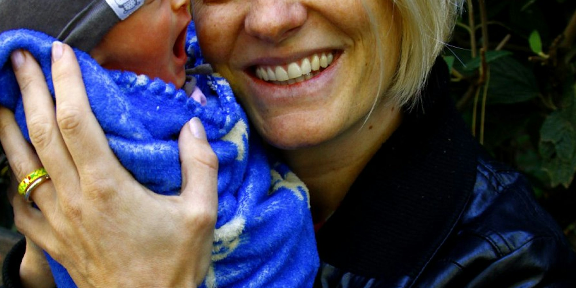 Okka Gundel mit Wonneproppen Felize Lykka. Mit Karsten hat sie schon die dreijährige Tochter Carlotta.