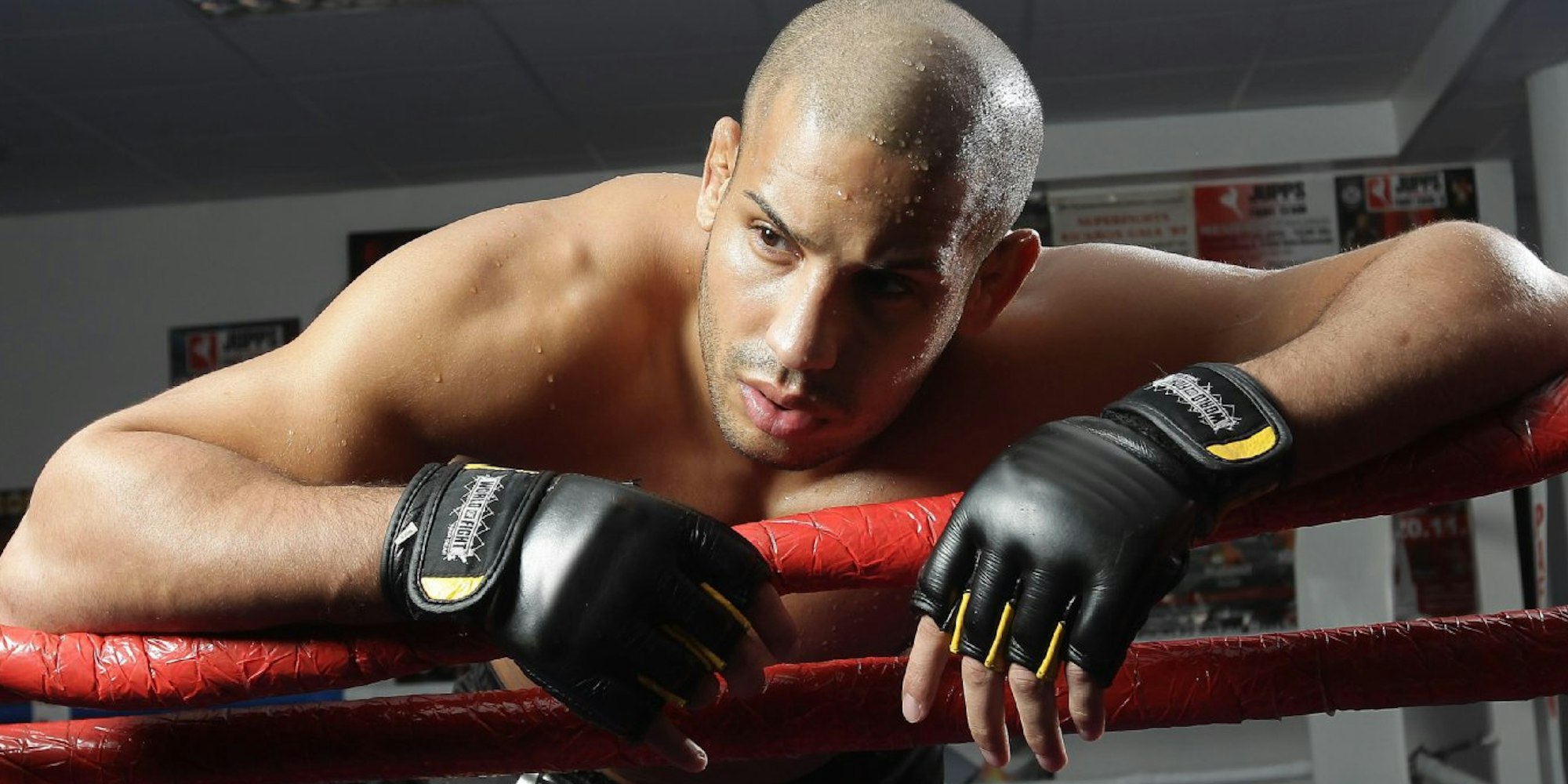 Abu Azaitar hängt fürs Foto in den Seiler. Kämpfen wolle er nur noch im Ring, sagt er.