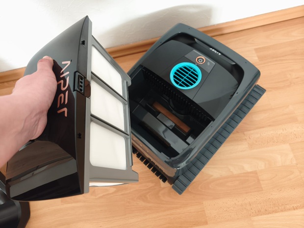 Die Entnahme ist angenehm gelöst, weil der Roboter zum Zyklusende an die Wasserlinie beziehungsweise den Beckenrand fährt und per App Bescheid gibt. Das reduziert Suchaufwand und macht den Moment der Entnahme planbarer. Gleichzeitig solltet ihr berücksichtigen, dass das Gerät beim Herausheben zunächst schwerer wirkt, bis Wasser abläuft. Insgesamt wirkt diese Lösung komfortabler als Systeme, die irgendwo im Becken stoppen und nur mit Haken erreichbar sind.
