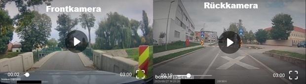 Die Frontkamera zeichnet in 4K Ultra HD auf und verwendet einen Sony IMX335 STARVIS Sensor plus ein sechslinsiges Glasobjektiv mit einer f/1.6 Blende, was zu detailreichen Bildern bei unterschiedlichen Lichtverhältnissen führt. Die Rückkamera liefert 1080p mit einem 120° Blickwinkel und eignet sich besonders für den Nahbereich. Bei schlechten Lichtverhältnissen ist die Frontkamera im Vorteil gegenüber der Rückkamera.