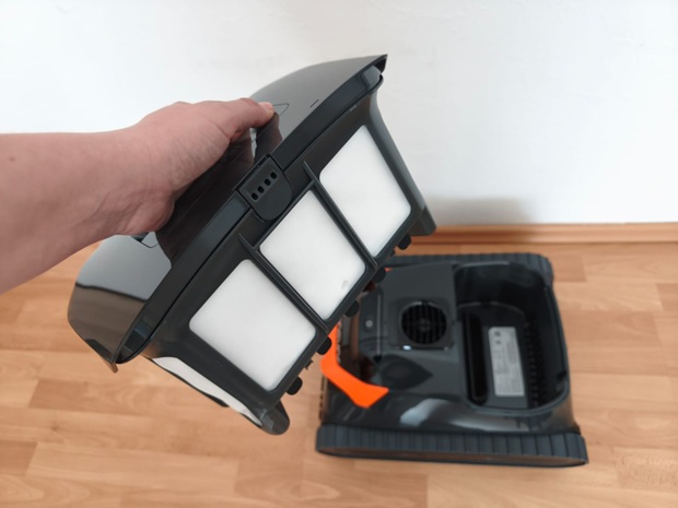 Was mir direkt positiv auffällt: Der Roboter ist konstruktiv klar auf Wartung getrimmt, weil der Top-Load-Filterkorb als Servicepunkt sofort sichtbar ist. Das ist nicht nur ein Komfortdetail, sondern beeinflusst, ob man die Filterpflege wirklich regelmäßig macht. Und genau das entscheidet im Alltag oft über dauerhaft gute Ergebnisse.