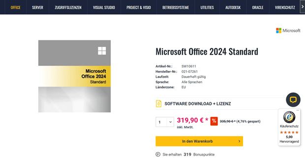 Bei Download-Software entscheidet nicht die Verpackung, sondern die Qualität des Zugangs. Positiv ist, dass das Produkt klar als Sofortdownload beschrieben wird und als Download + Lizenz geführt ist. Kennzeichnungen wie SW10611 und 021-07261 schaffen dabei Ordnung und wirken deutlich konkreter als sehr allgemein gehaltene Angebote. Die Office-Welt bleibt trotzdem etwas sperrig, was weniger am Shop als an der Produktlogik selbst liegt.