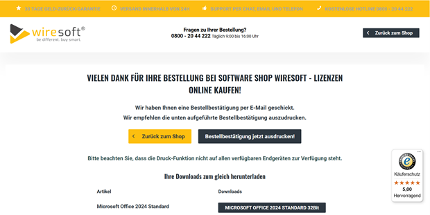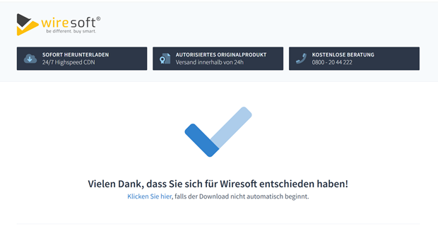 Wiresoft beschreibt sich als international tätigen E-Commerce-Anbieter für Download-Software und ist laut eigener Angabe seit 2010 am Markt aktiv. Das Unternehmen ist in mehr als 27 Ländern vertreten, nennt 1.000.000 Kund*innen, 55 Mitarbeitende und eine Bewertung von 4,8 bei TrustedShops. Die starke Ausrichtung auf digitale Prozesse passt grundsätzlich gut zu einem Modell, bei dem Software als Sofortdownload bereitgestellt wird.