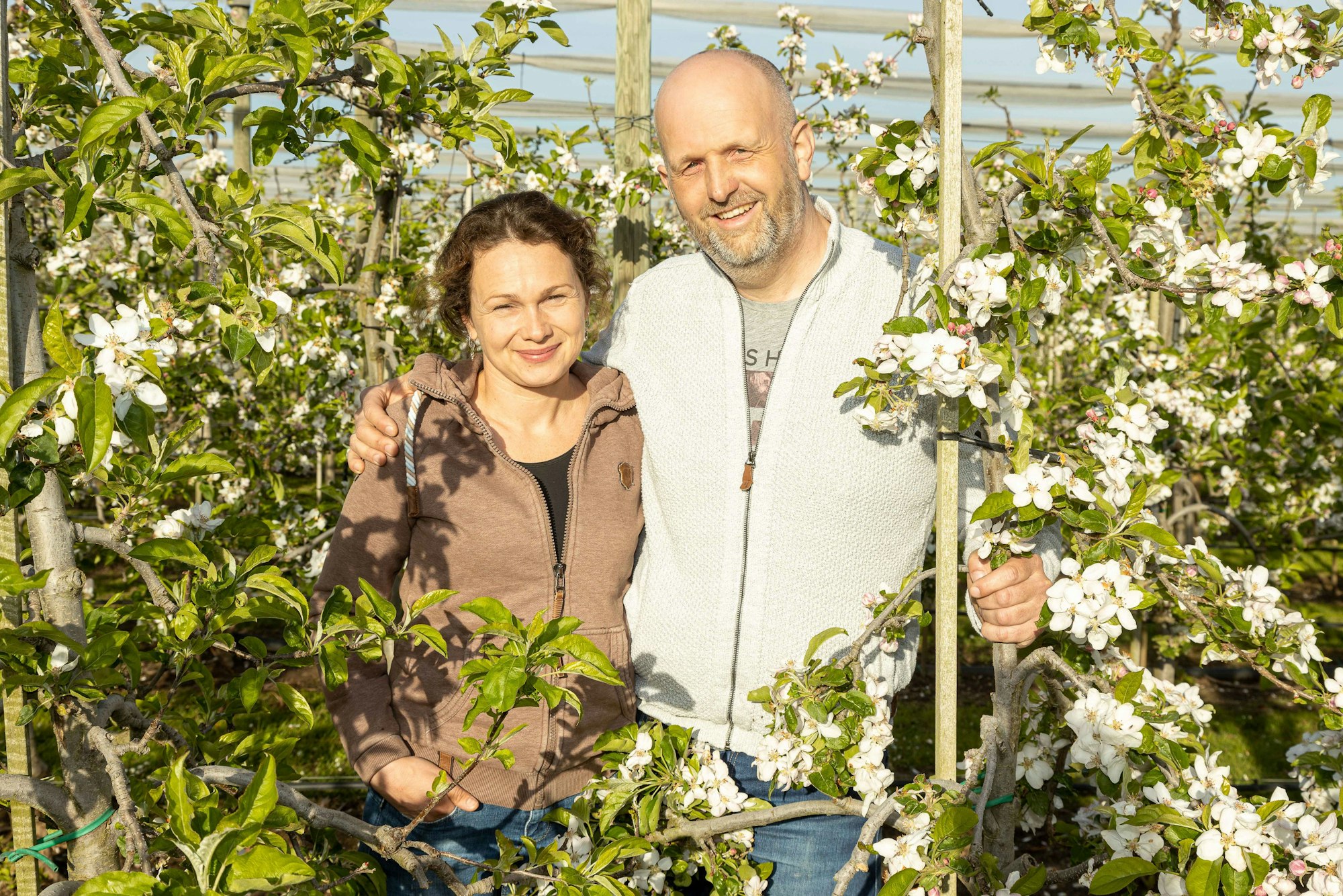 Roland Schmitz-Hübsch und Edyta Faron in ihrem Obstbaubetrieb.