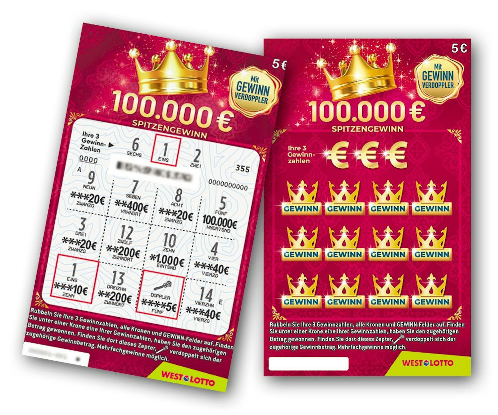 Das WestLotto-Rubbellos „Krone“Zwölf Chancen auf 100.000 Euro