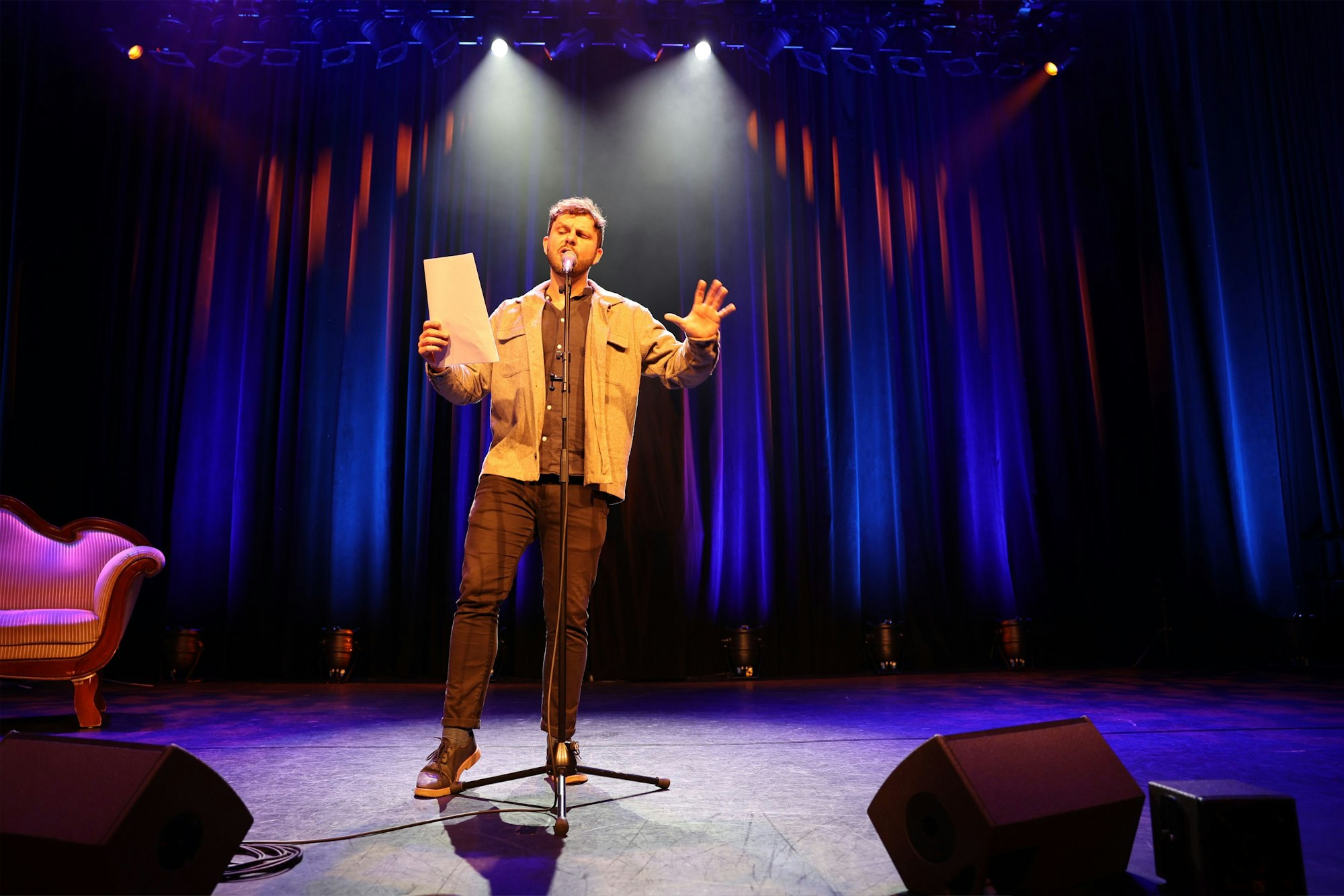 Der erfahrene Poetry-Slammer aus Essen taucht mit einfallsreichen Ideen und kreativen Wortspielen in die Welt von WestLotto ein. Seine poetischen Erzählungen drehen sich um Themen wie das allgemeine Glück, Nordrhein-Westfalen oder das Lottospielen – vorgetragen im Ebertbad in Oberhausen.