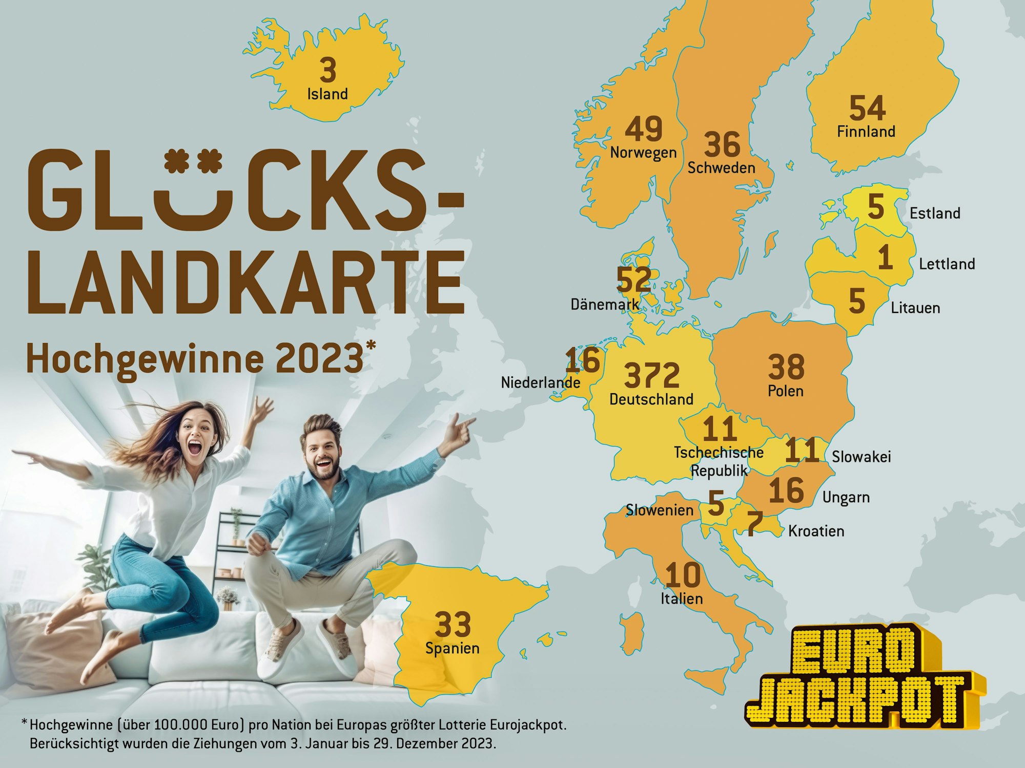 Gewinnerbilanz 2023 – Europa-Vergleich der Hochgewinne ab 100.000 Euro aufwärts.