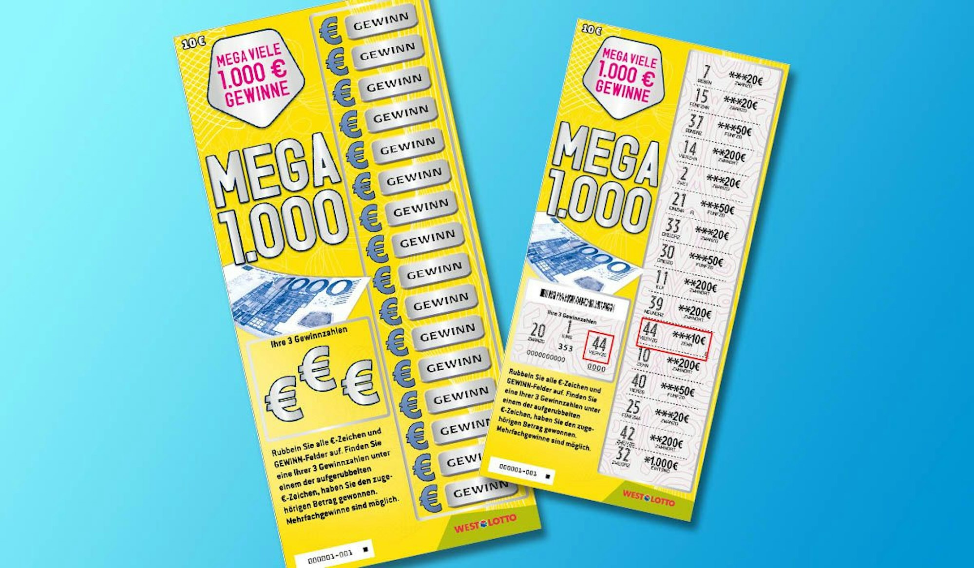 MEGA 1.000Mega-Chancen auf 1.000 Euro – Neues Rubbellos von WestLotto